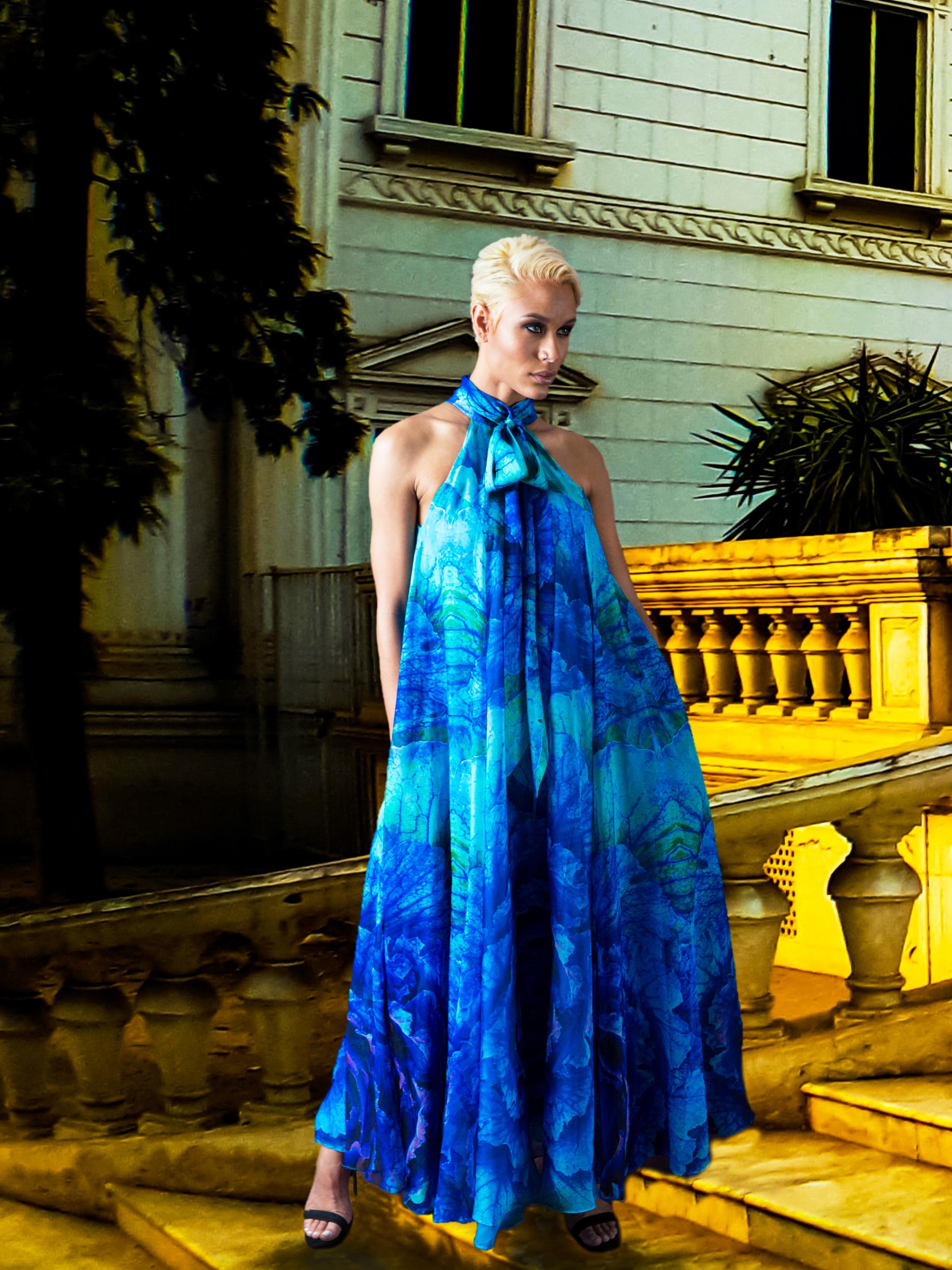 Slipping it on, she turned, watching herself in the mirror, the soft silky feel of the chiffon, making her feel sexy in her skin; The floor length style making her feel magically glamorous. She smiled, grabbed her shoes and headed down the stairs