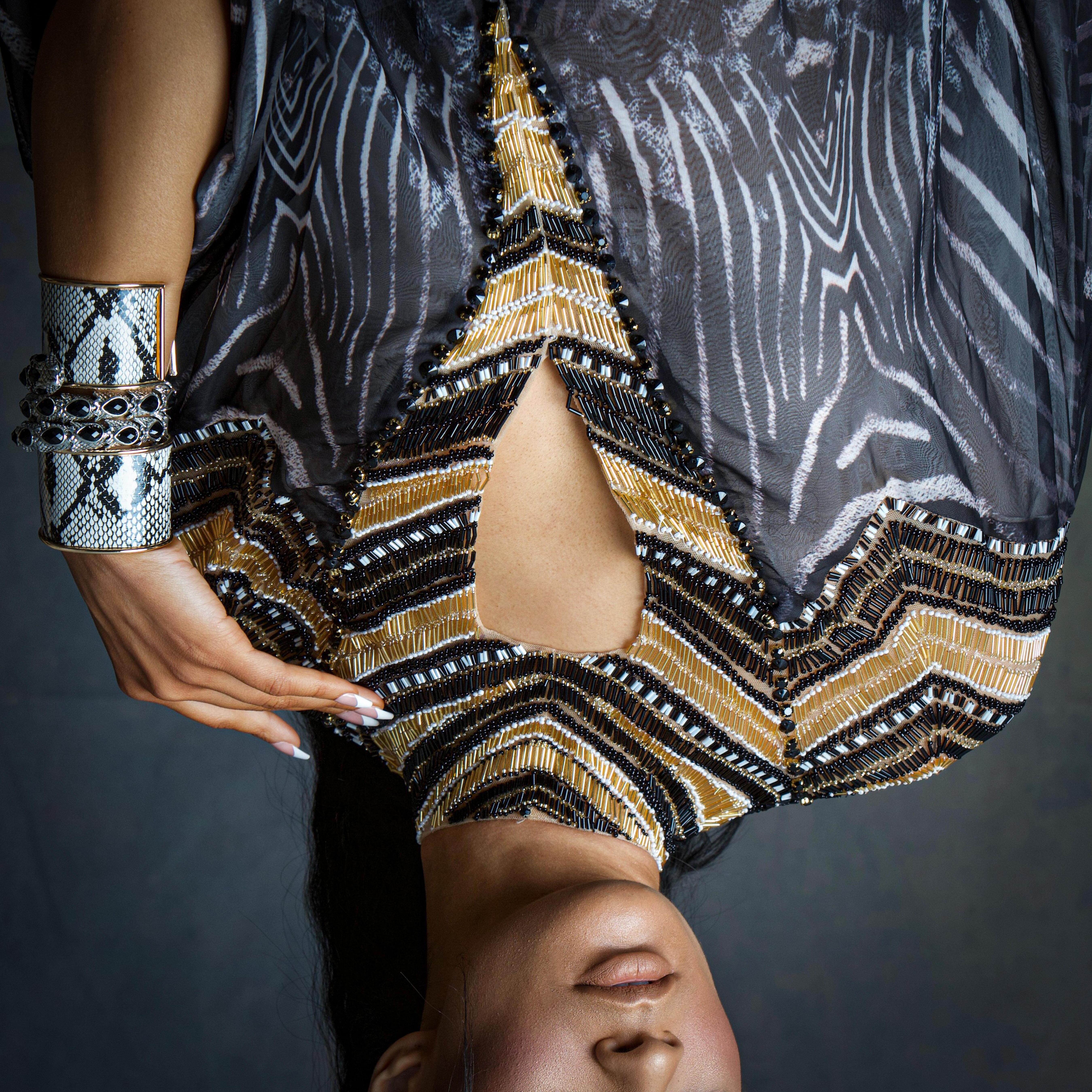 ESCAPE (to me) means, experiencing a sense of peace The wardrobe pieces therefore are crafted to enhance that sense freedom. The garments mix elegance with comfort, and the refined with easy. There is something to be said when a woman can mix modern edge with oldfashioned glamor.
