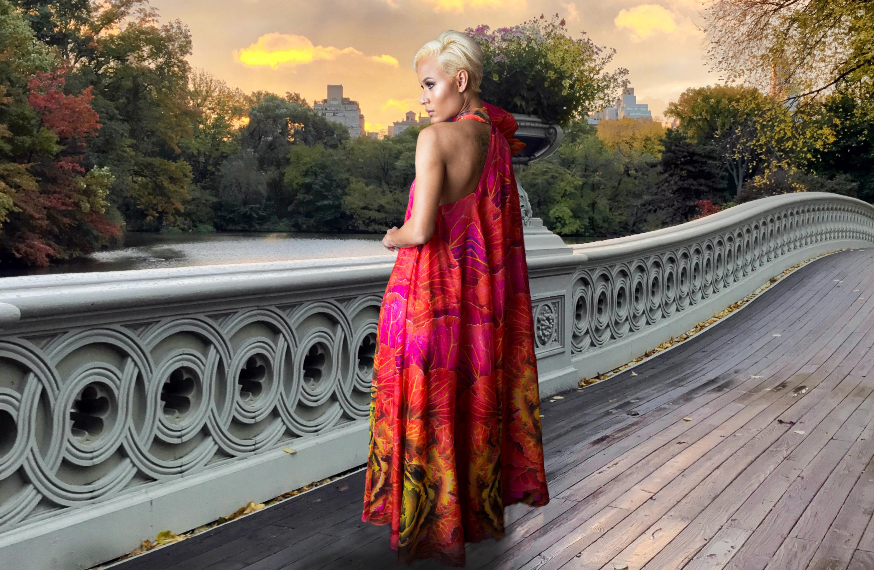 Shifting her gaze, she looked at the gown lying on the white plush sheets, its colors radiating from the plain canvas like the sunset over the Hudson River; the silky chiffon spilling over mahogany floorboards, like waves kissing the shore.
