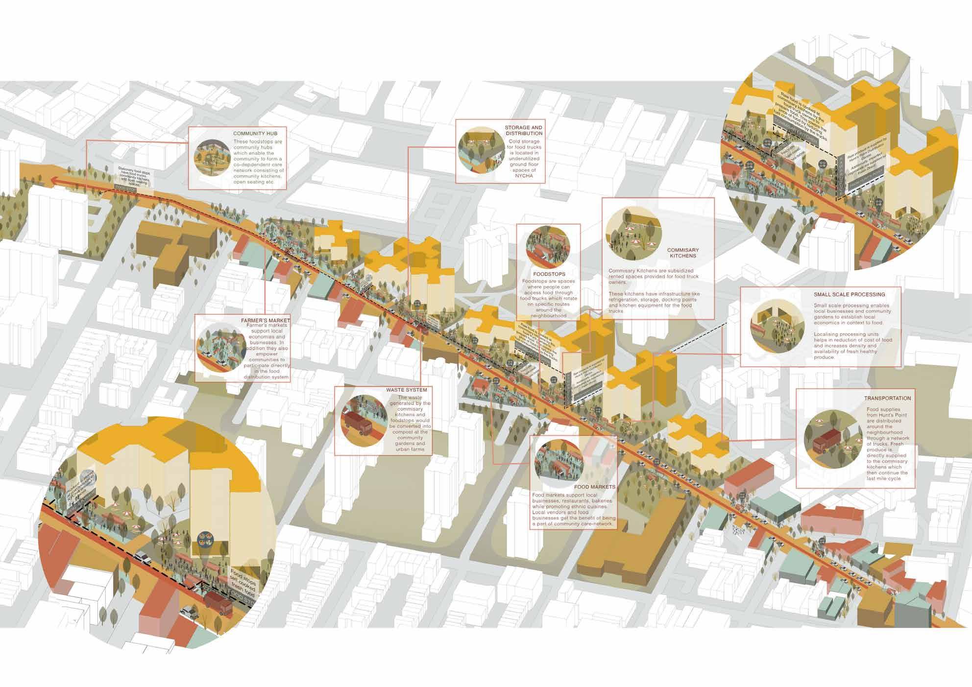 This project is a food supply system design in Bronx, New York. The focused are is along the 3rd Ave near the NYCHA housing, which the residents are in proverty. Due to the food culture and low income, people in this area prefer to buy fast food, which is unhealthy and cause high rate of obesity. So, the goal of this project is to create a food system in the Bronx and provide people with more convenience and more accessible ways to get fresh food, and offer them several choices, which will include the Bodega, Fresh Truck, and also Community Garden. And we will try to incorporate with the government and other organizations to work together, which include the Hunts Points distribution, NYC Sanitation Department, Grow NYC, Mayor’s Office, and Community Associations.