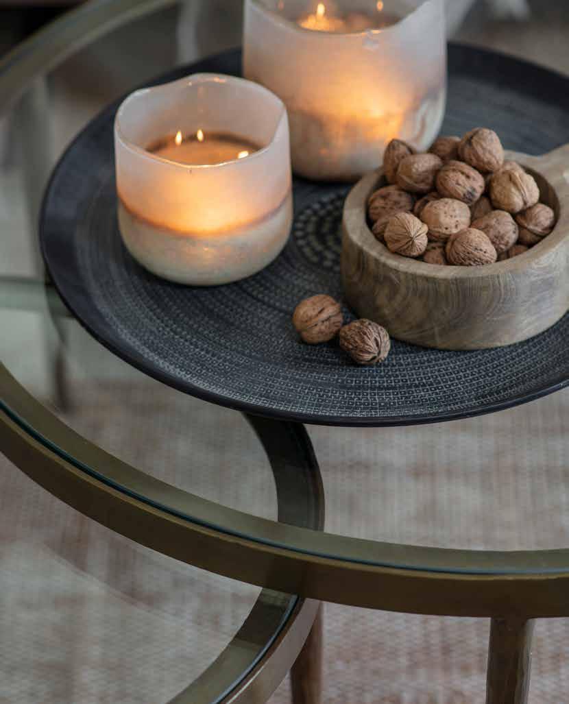 Nakuru Iron & Glass Side Table Set – Set of 2 Brass | Aluminium | NT4801 | Small 55 x 30cm (dia) & Large 61.5 x 40cm (dia) £275.00