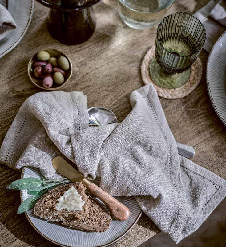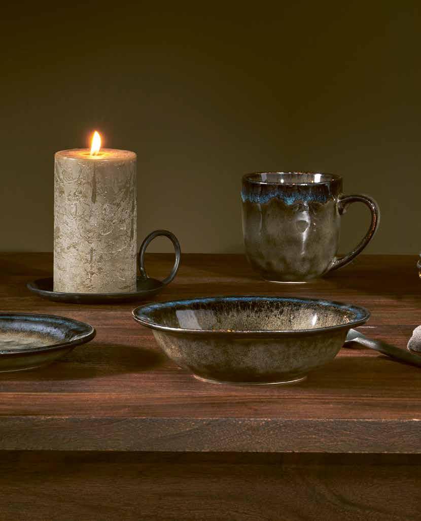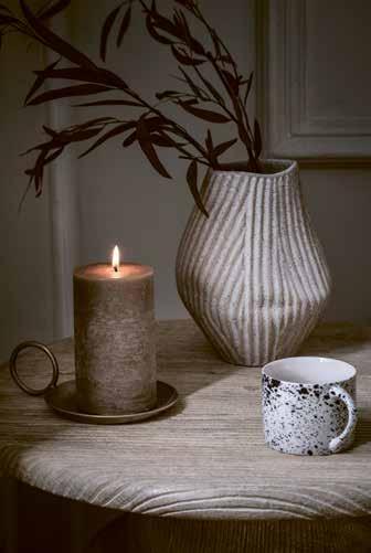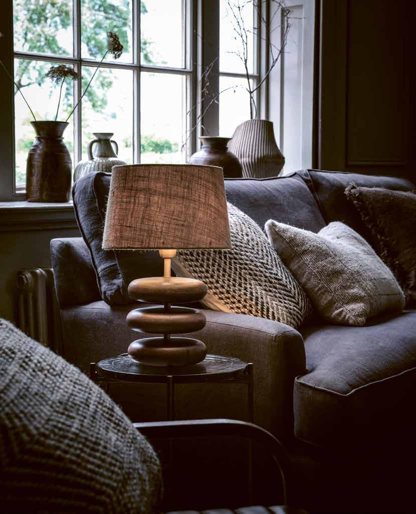 62 Pg 35 NEW Kankad Mango Wood Table Lamp Dark Stain | Mango Wood | KL3101 | 30 x 18.5cm (dia) Dia Jute Lampshade Natural | Jute | DL3601 | Small 14.5 x 15.5/20cm (dia) NEW Aluva Glass Side Table Clear & Antique Brass | Glass | AT1401 | 50 x 38cm (dia) NEW Faiyaz Jute & Cotton Cushion Cover Natural & Dark Blue | Jute | AT1401 | 50 x 50cm Mayla Cushion Cover Natural | Linen | MC5902 | 60 x 40cm NEW Cali Mug – Set of 2 Earth Blue | Ceramic | CM0101 | 10 x 10cm (dia) NEW Dimali Metal Candle Holder with Handle Antique Bronze | Iron | DH0901 | 7 x 16.5 x 12.5cm NEW Rustic Pillar Candle Charcoal | Soy Wax | RC1401 | Tall 13 x 8cm (dia) Timu Leather Journal Chocolate Brown | Leather | TL0012 | A6