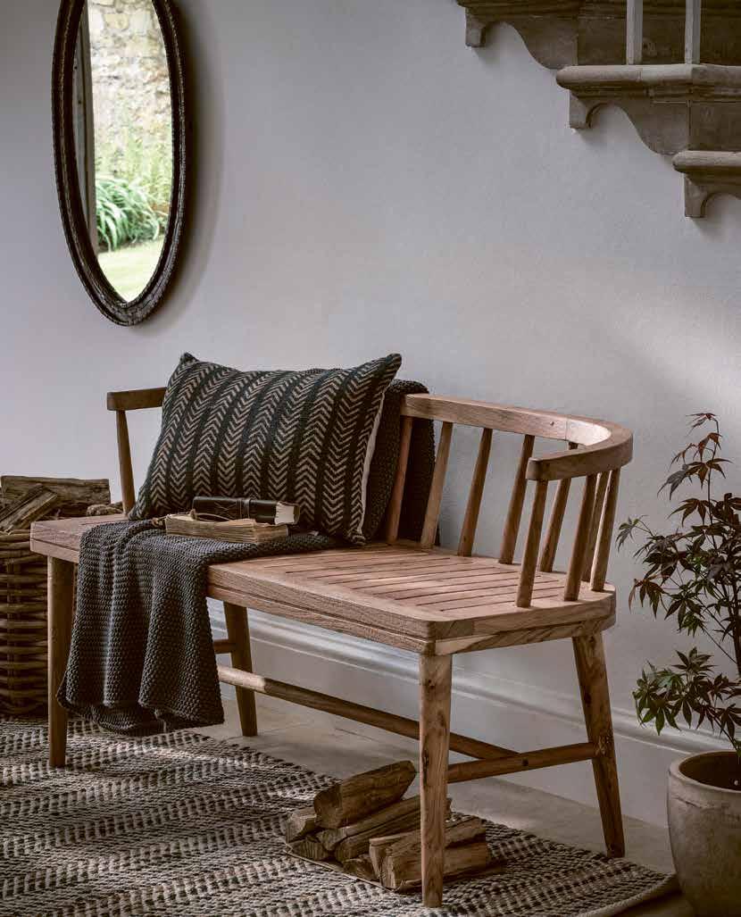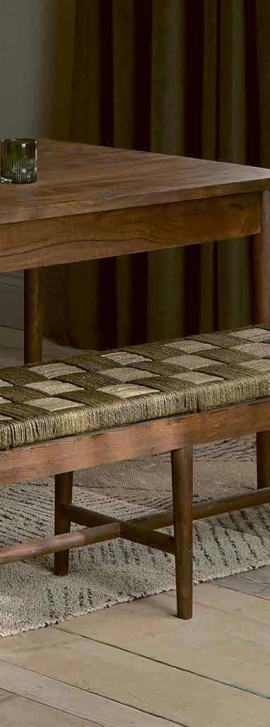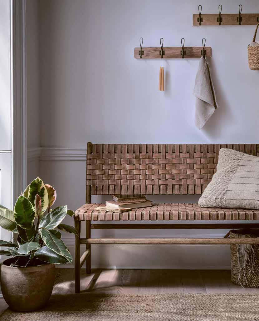 Left: NEW Adembi Woven Leather Bench Natural & Brown | Leather | AB3301 | 86 x 130 x 54cm Chapad Hemp Wide Wall Hung Basket Natural | Hemp | CB1401 | Small 15 x 15cm (dia) Jaiyuh Hemp Pet Bed Natural | Hemp | JB0102 | Medium 25 x 70 x 55cm NEW Ankita Mango Wood & Iron Hooks Antique Brass & Natural | Mango Wood | AH2301 | Large 13.5 x 104 x 8cm | AH2201 | Small 13.5 x 52 x 8cm Indra Coil Basket Natural | Jute | IB4601 | Small 31 x 31cm (dia) Affiti Clay Planter Antique Grey | Clay | AP1102 | Medium 30 x 40cm (dia) | AP1103 | Large 40 x 50cm (dia)