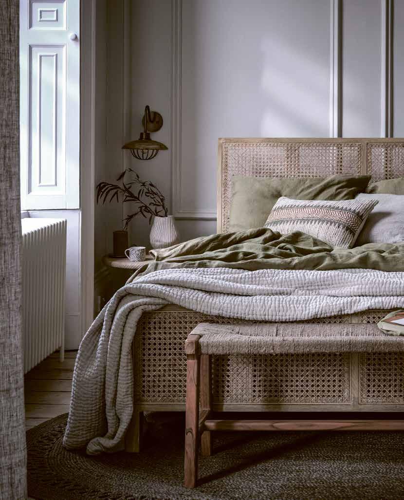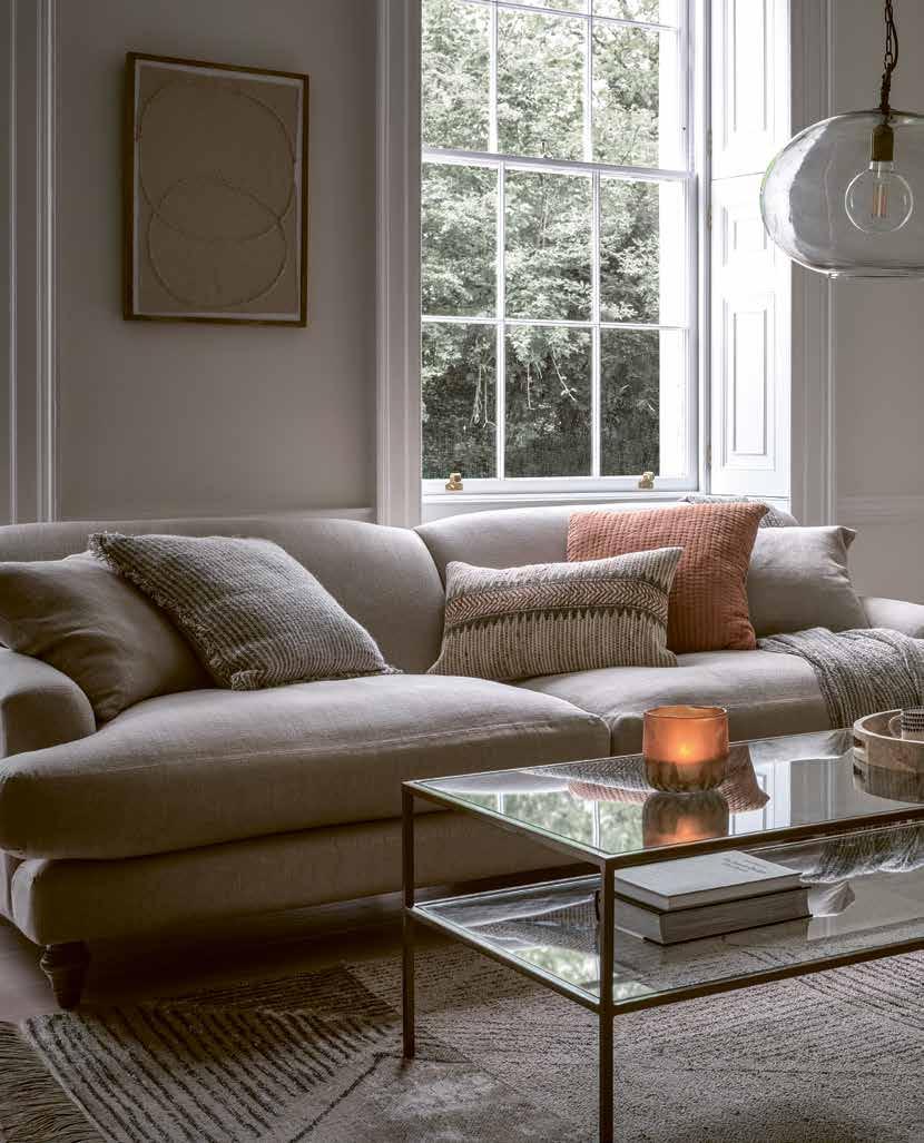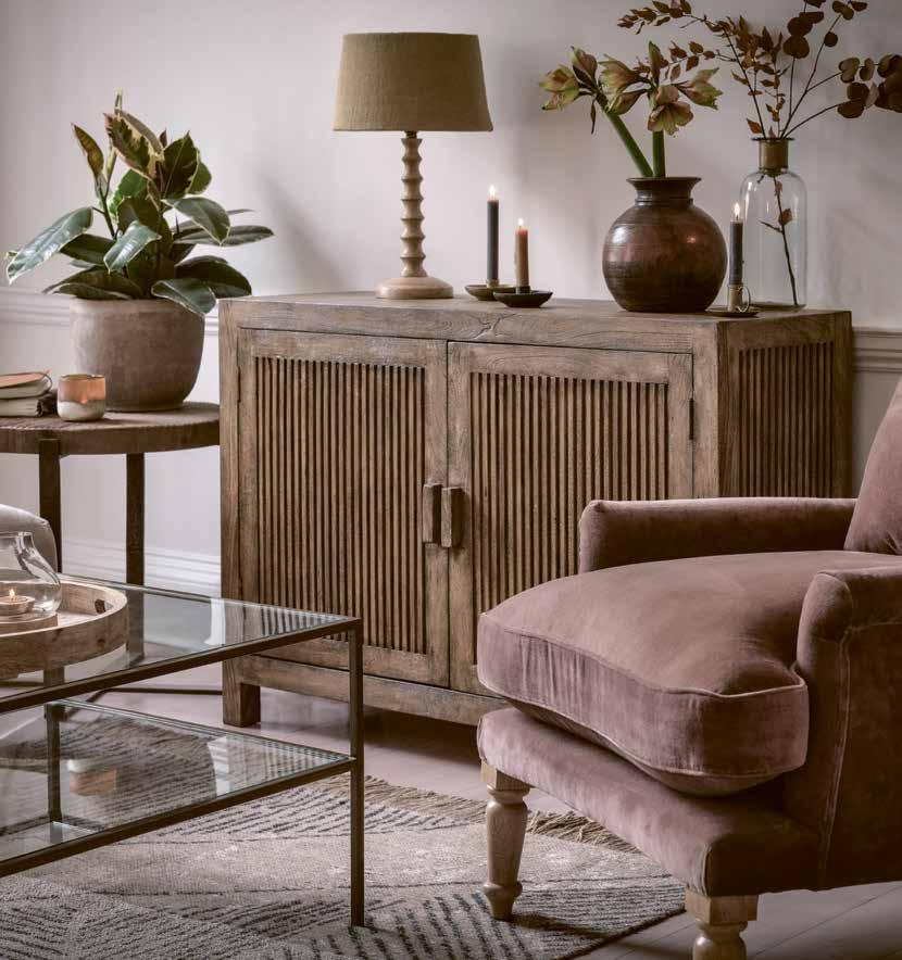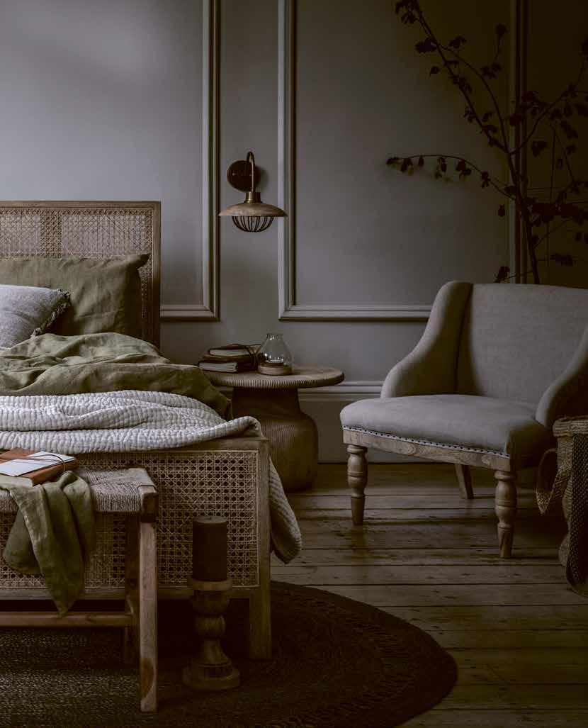 Surround yourself with the simple comforts of muted linens and earthy velvet, inviting a sense of serenity into the home. Hand carved decorative pieces, structural lighting, and relaxed seating set the scene, and for the finishing touch layer handwoven soft furnishings to create a timeless hideaway.