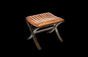 Narwana Ribbed Leather Foot Stool Aged Leather & Iron | Iron | NS1201 | 39 x 40 x 48cm