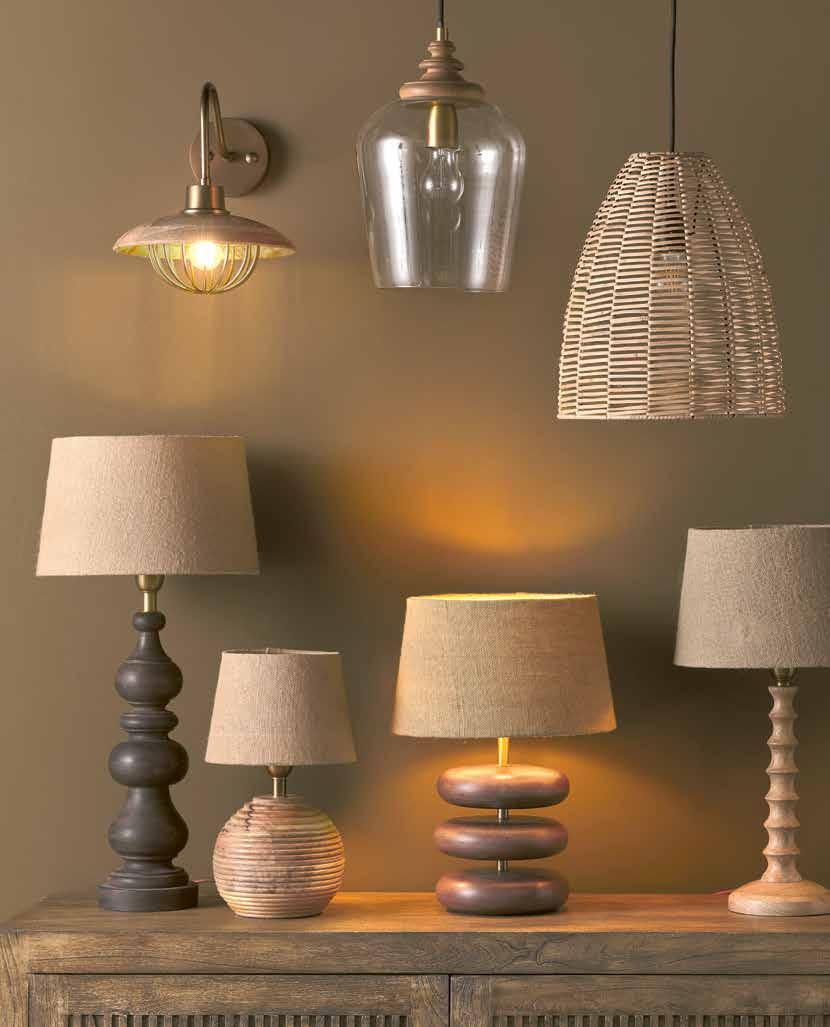 Lighting plays a key part in an interior and this season we are drawn to organic shapes and textures: the elegance of recycled glass, the simplicity of natural rattan, and the tactility of mango wood that has been shaped by hand.