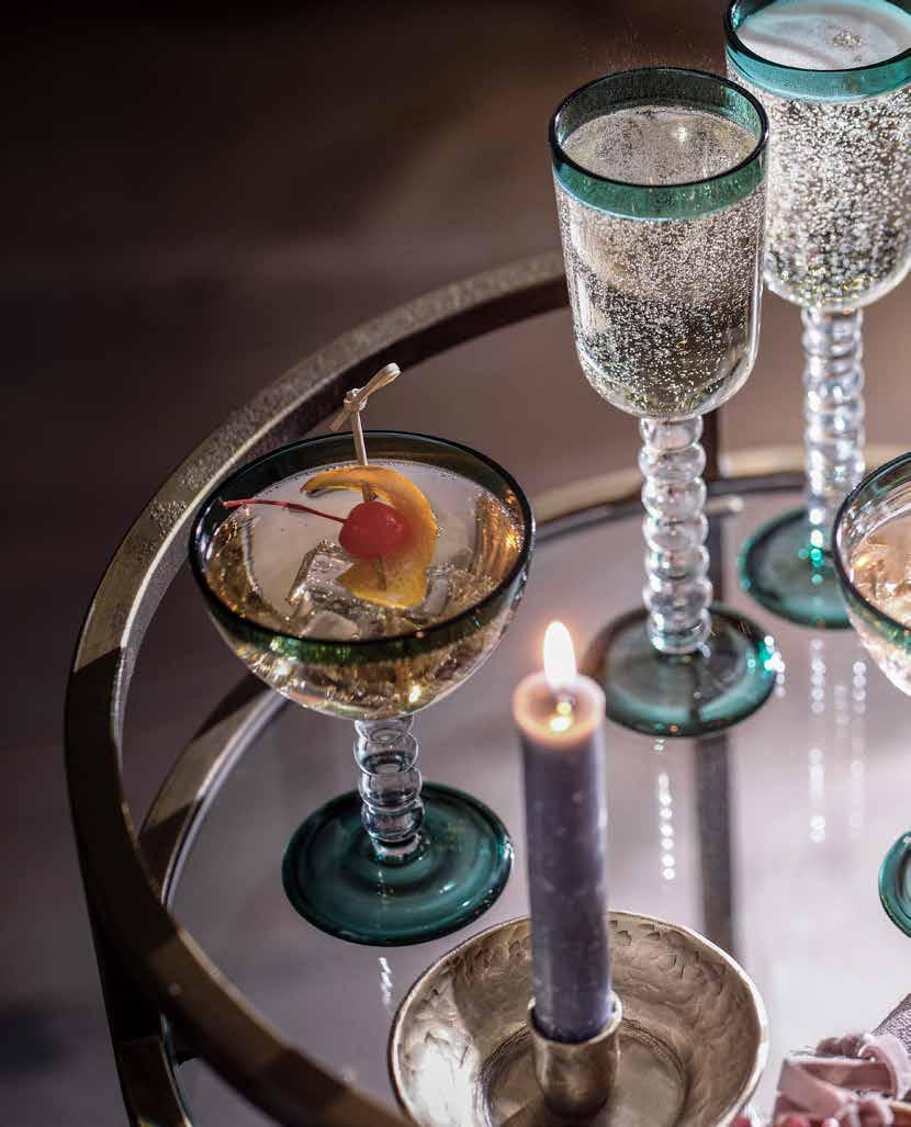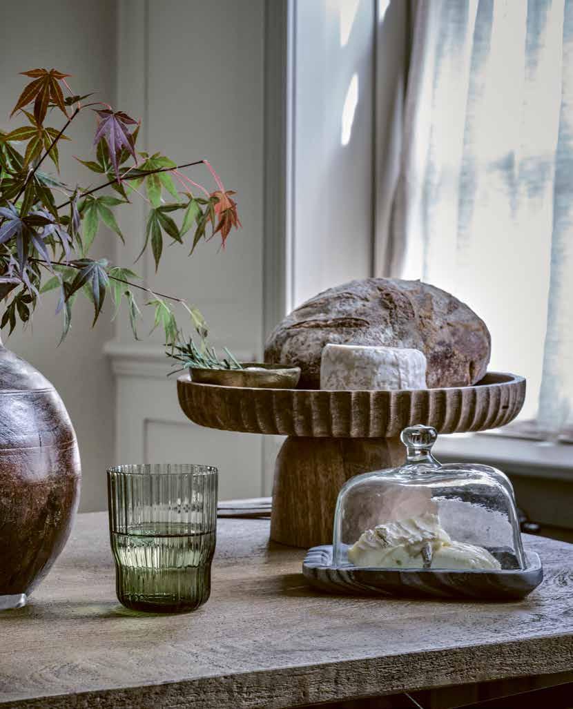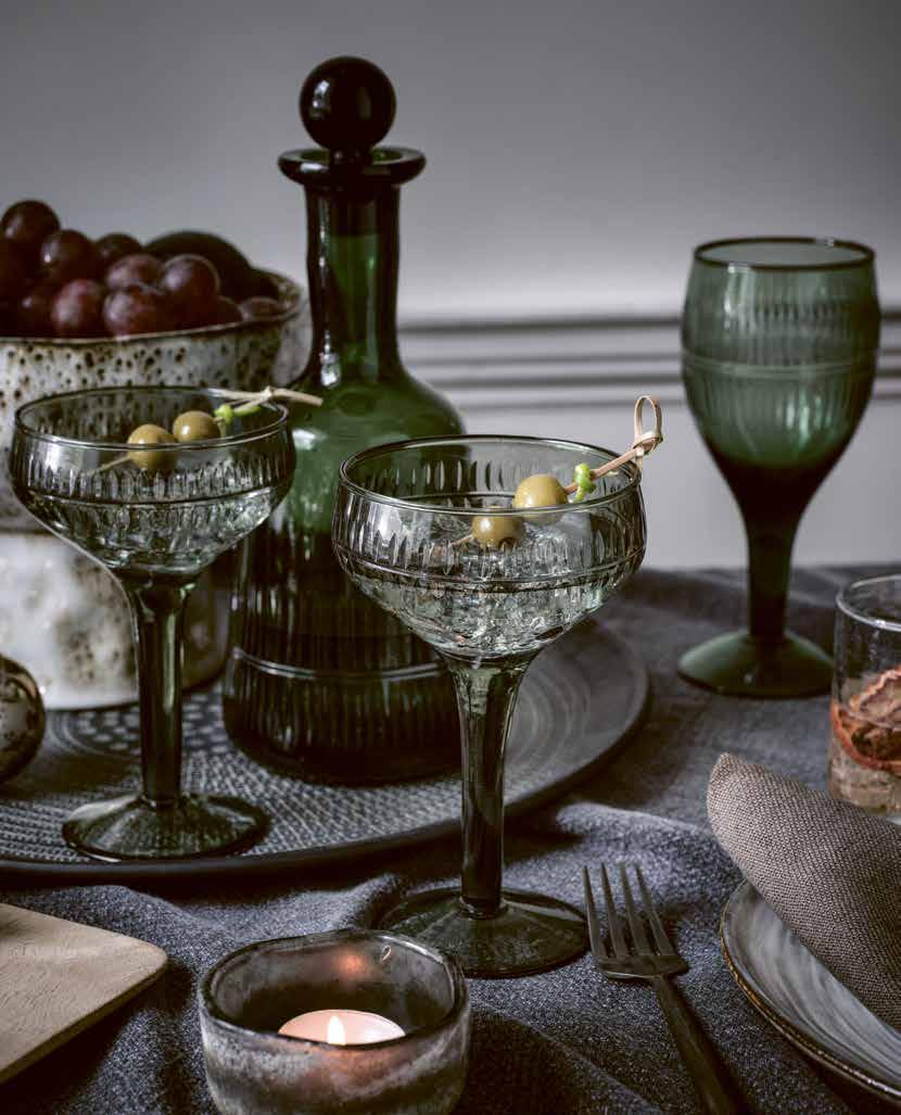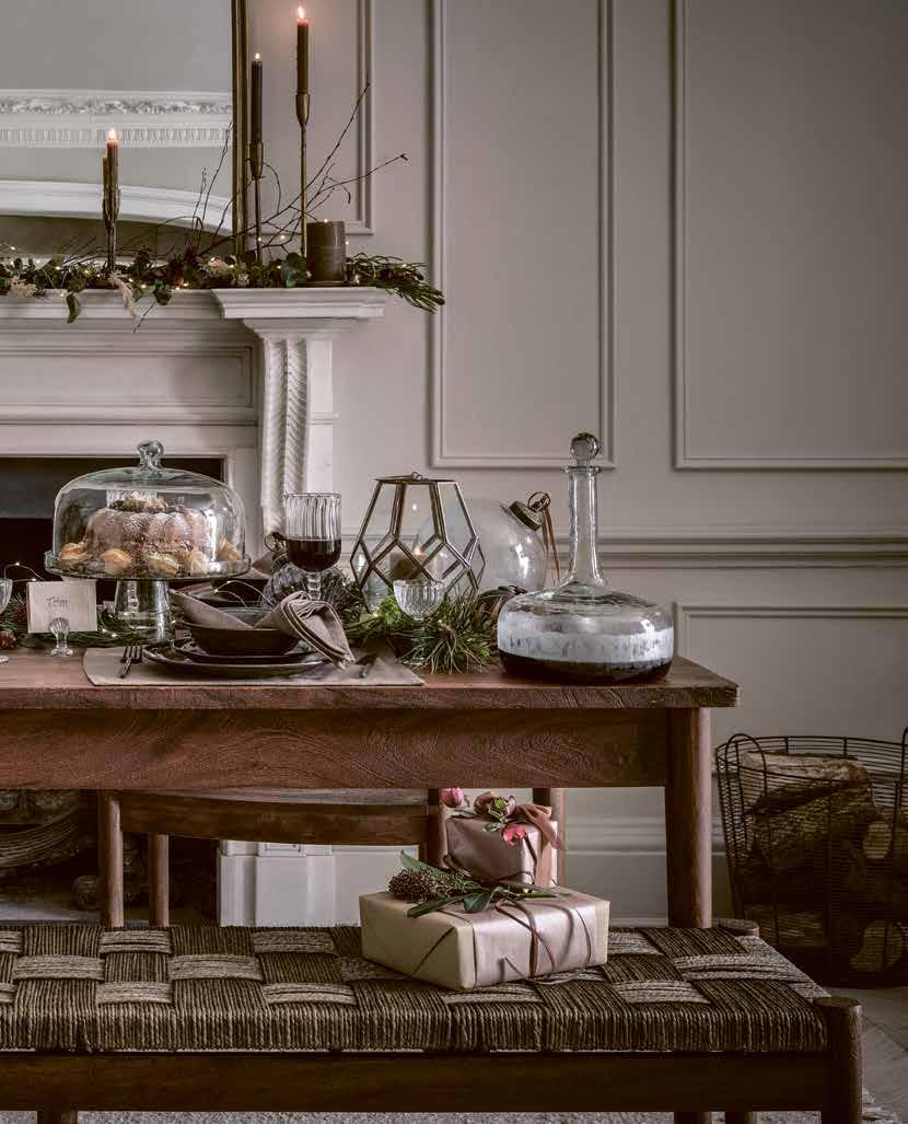 Dressed for festive feasting, our timeless table setting exudes celebratory charm and effortless style. Artisan tableware provides the backdrop to the main event, while sophisticated wine glasses and recycled glass serveware bring tactility and understated elegance. For the finishing touch, foraged foliage, brass lanterns, and Christmas decorations provide a festive flourish to delight your guests.