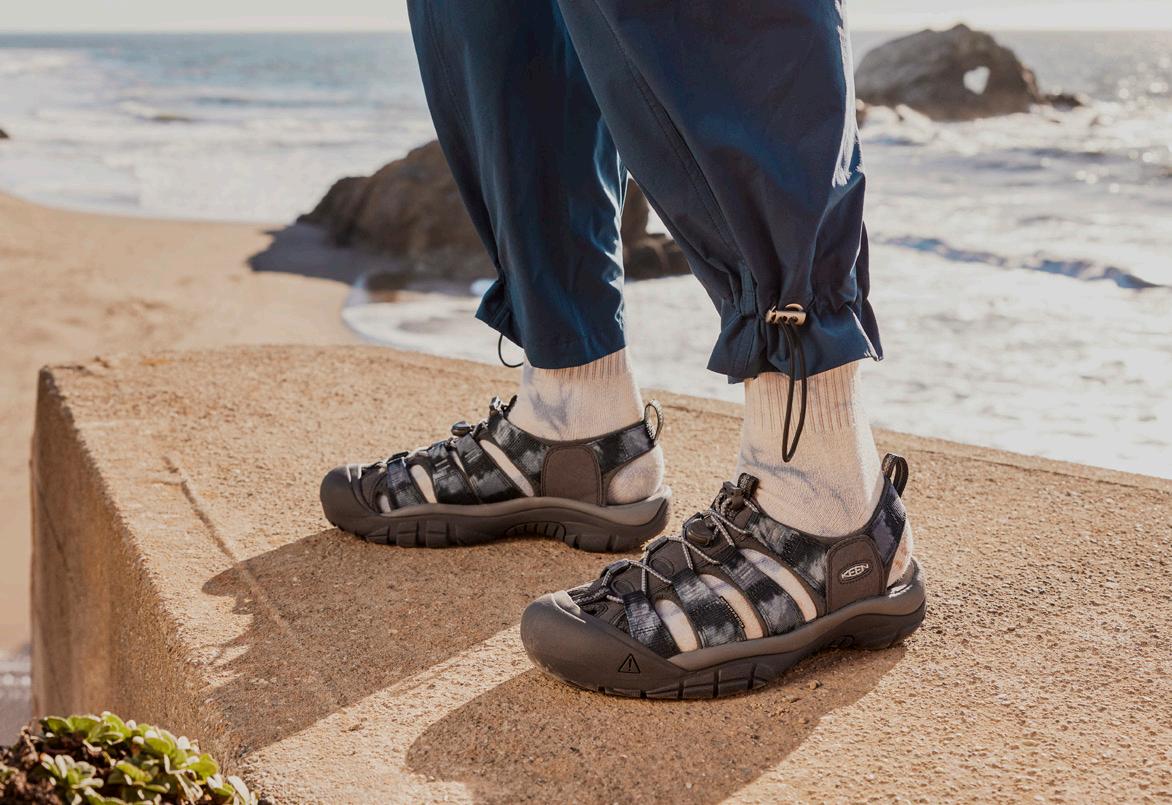 このシンプルな疑問の解決策 である、つま先を保護するサ ンダル『NEWPORT』の発 明と共に、KEENは誕生しまし た。まさに“発明”と呼ぶにふさ わしい、これまでに存在しな かったつま先を守るハイブリッ ド・サンダル『NEWPORT』の 登場です。