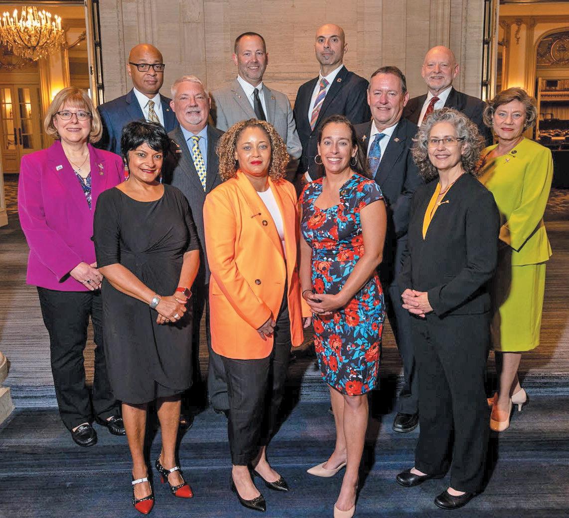 2023–24 WEF BOARD OF TRUSTEES BACK ROW, L-R: Stephen Sanders, Corey Williams, Diego Rosso, Pat Nichols. MIDDLE ROW, L-R: Christine Volkay-Hilditch, Keith L. Hobson, Howard Carter, Janet Hurley Cann. FRONT ROW, L-R: Kalpna Solanki, Ifetayo Venner, Aimeé R. Killeen, Tracy Ekola.