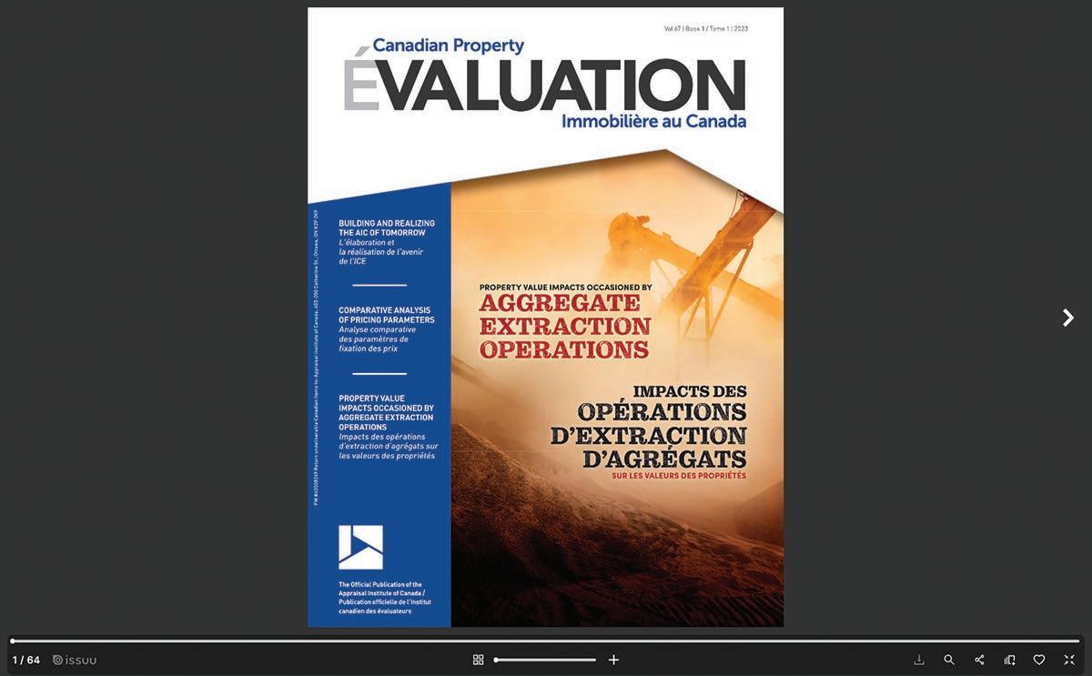 respectif, mais ne sont pas nécessairement endossés par l'Institut canadien des évaluateurs Tous droits reservés 2024 par l'Institut canadien des évaluateurs. La reproduction totale ou partielle sous quelque forme que se soit sans authorisation écrite est absolument interdite. Abonnement 40,00 $ par année. Imprimé au Canada.