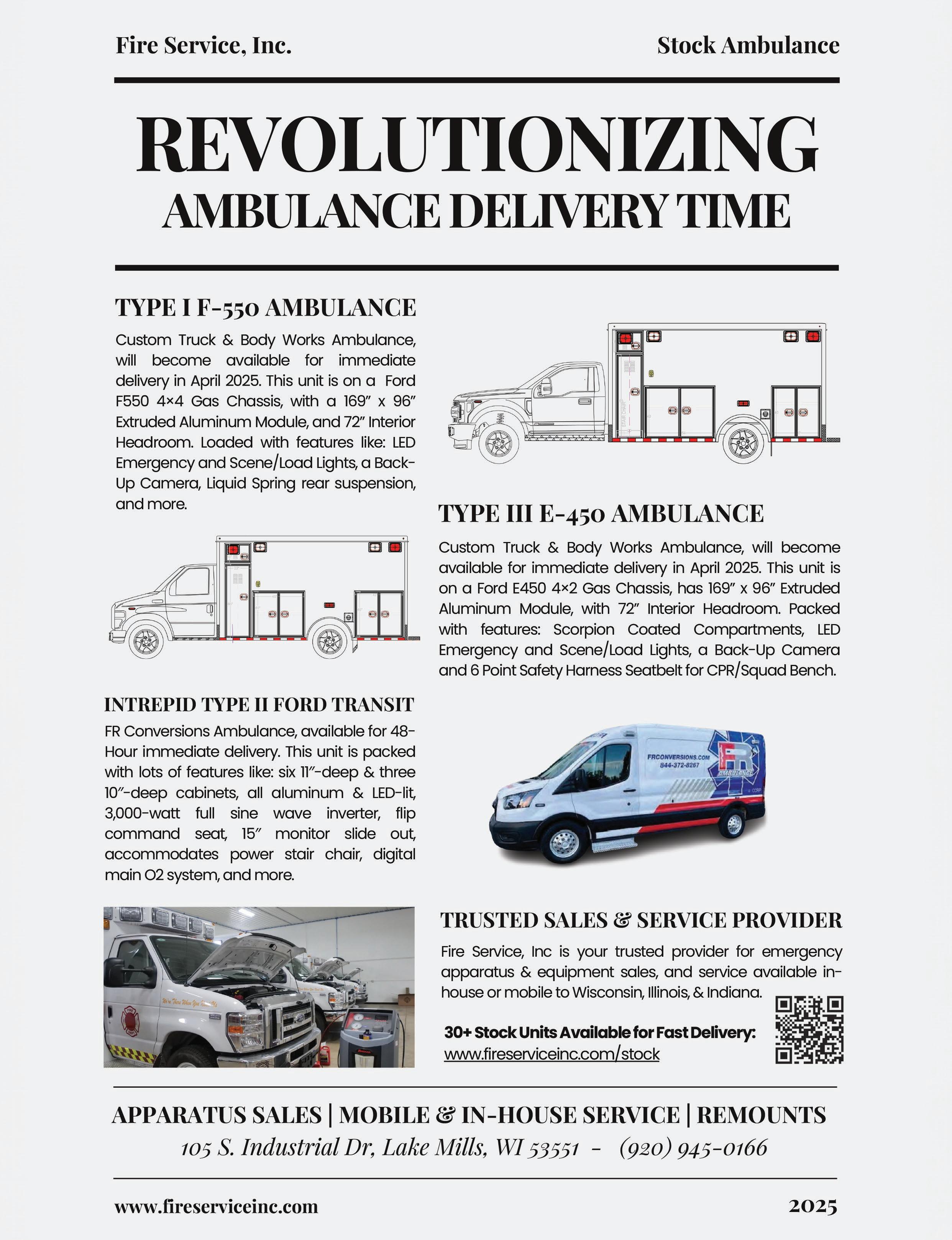 24+ Years of Service: The Nation’s Largest Ambulance only dealersip. Dedicated to serving EMS agencies for the long term.
