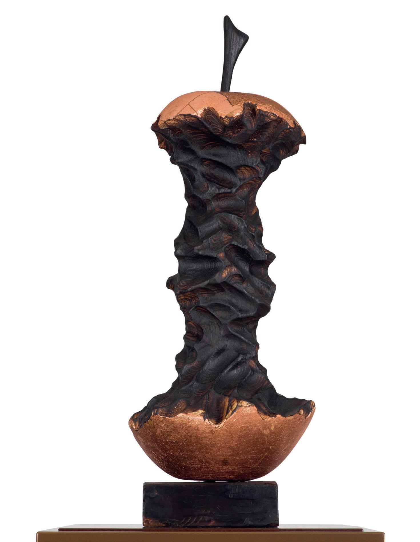 Finally, I get up at last. I’m going up to the big desk, to look at the bronze statue beside the window. It’s an apple core. I gently feel out the apple’s curve, then the bite marks on its robust heart. Adam and Eve’s, a last memento of paradise lost. Will I be the kind of person reminded of original sin when I see this, or will my thoughts take an entirely different direction?