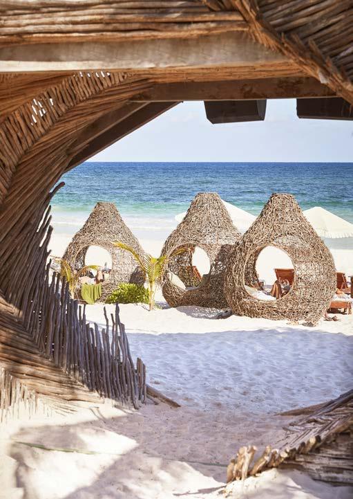 With relaxing massages, comfortable palapas and beachfront dining, everyone will find their favourite spot. Bottom right: Inside the hotel, the ivy-lined atrium is a sight to behold.