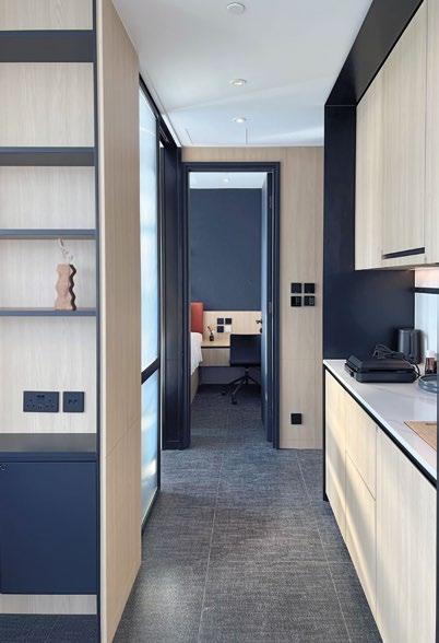 LEFT & RIGHT: The bedrooms are as both a hotel and long-term stay destination with dedicated working areas.