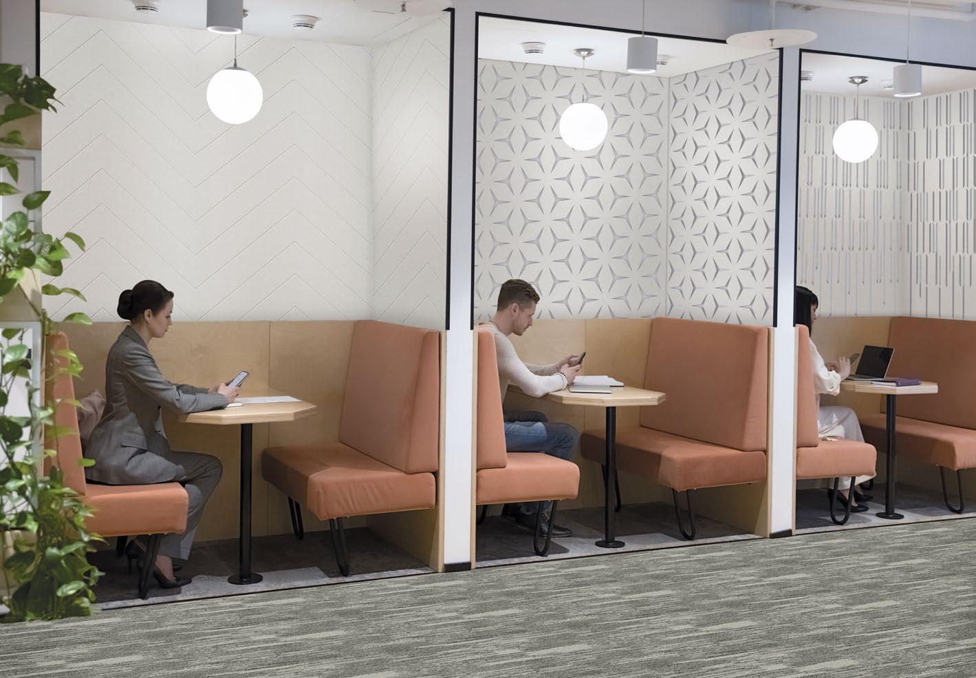 A: All of our brand products can be used in different areas of a project complementing each other. For example, when our carpet and acoustic panels are used in the same area, the noise absorption level can be enhanced. Therefore, 1 + 1 > 2.
