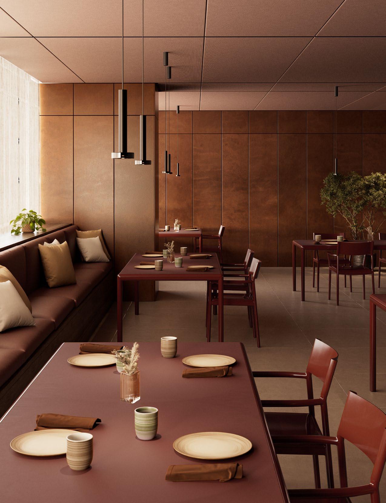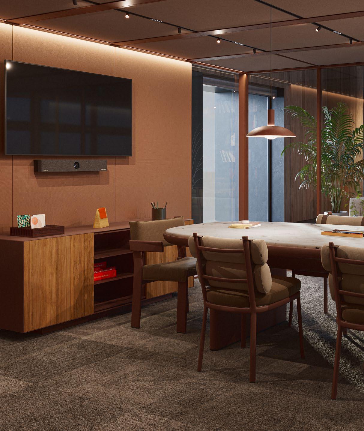 The materials in the new collection of the Pavilion M system are represented by fabrics, metals, woods, stones and ceramics. All of these worlds form the basis of the library. The intention is to inspire and invite the professional to explore and combine colors, textures and materials to create new exclusive codes for each project and each use.