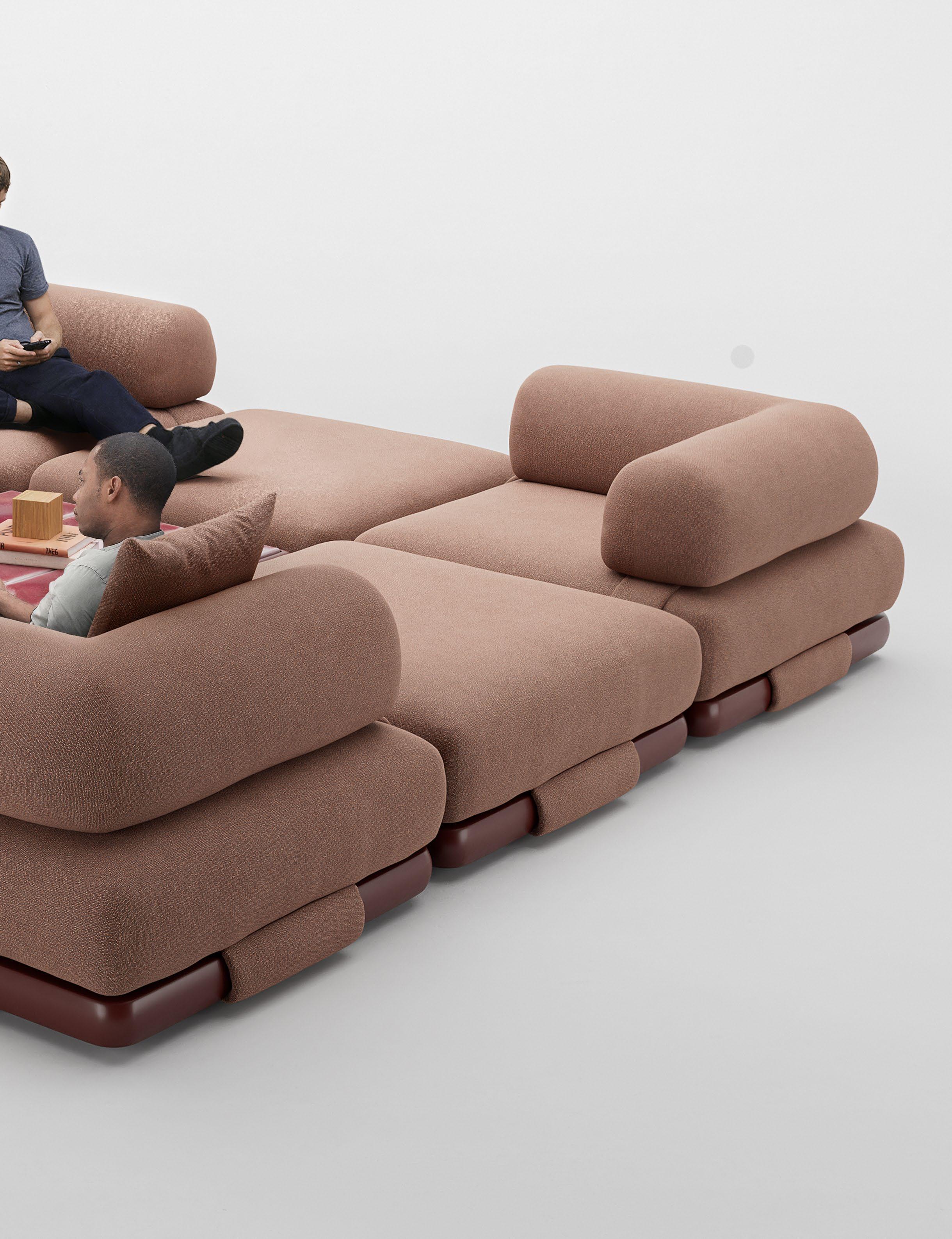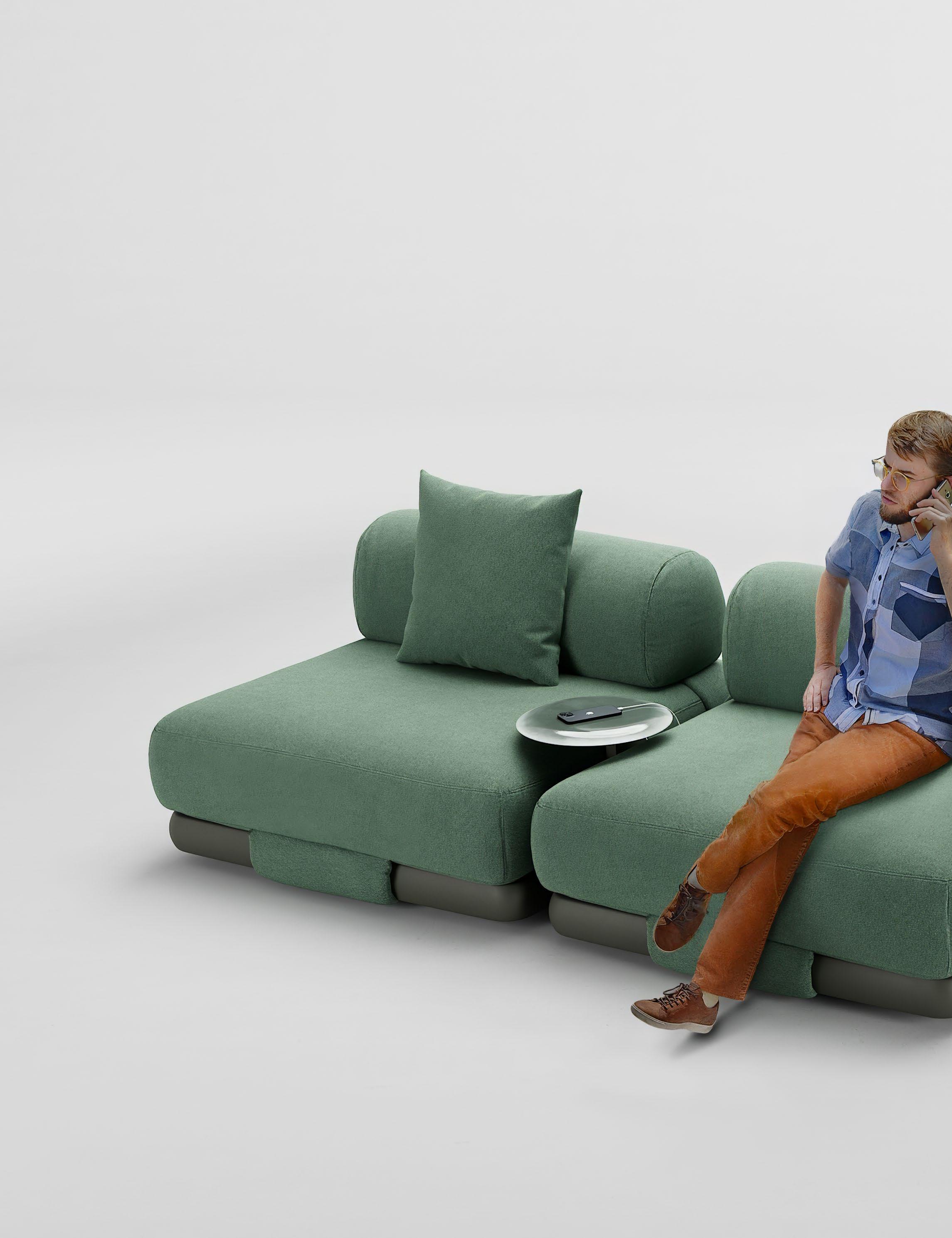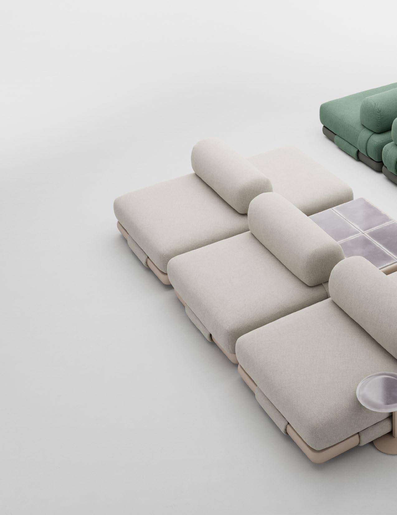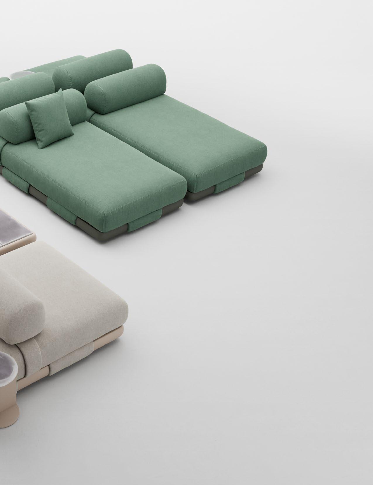 Functionally, like the original concept of Arab Majlis, the main function of the Insula sofa is socializing. The multitude of configurations allows it to adapt to all kinds of social situations, both indoors and outdoors: from the reception of an office where one can find a place to work relaxed, to resting in a home or outdoors for sunbathing and having fun. Its modular design consists of an orthogonal aluminum base with very softened shapes where the seat cushion, very plush and comfortable, is located. The two sizes of its seats allow for various types of backrests: individual, double, angular, etc. situations, find