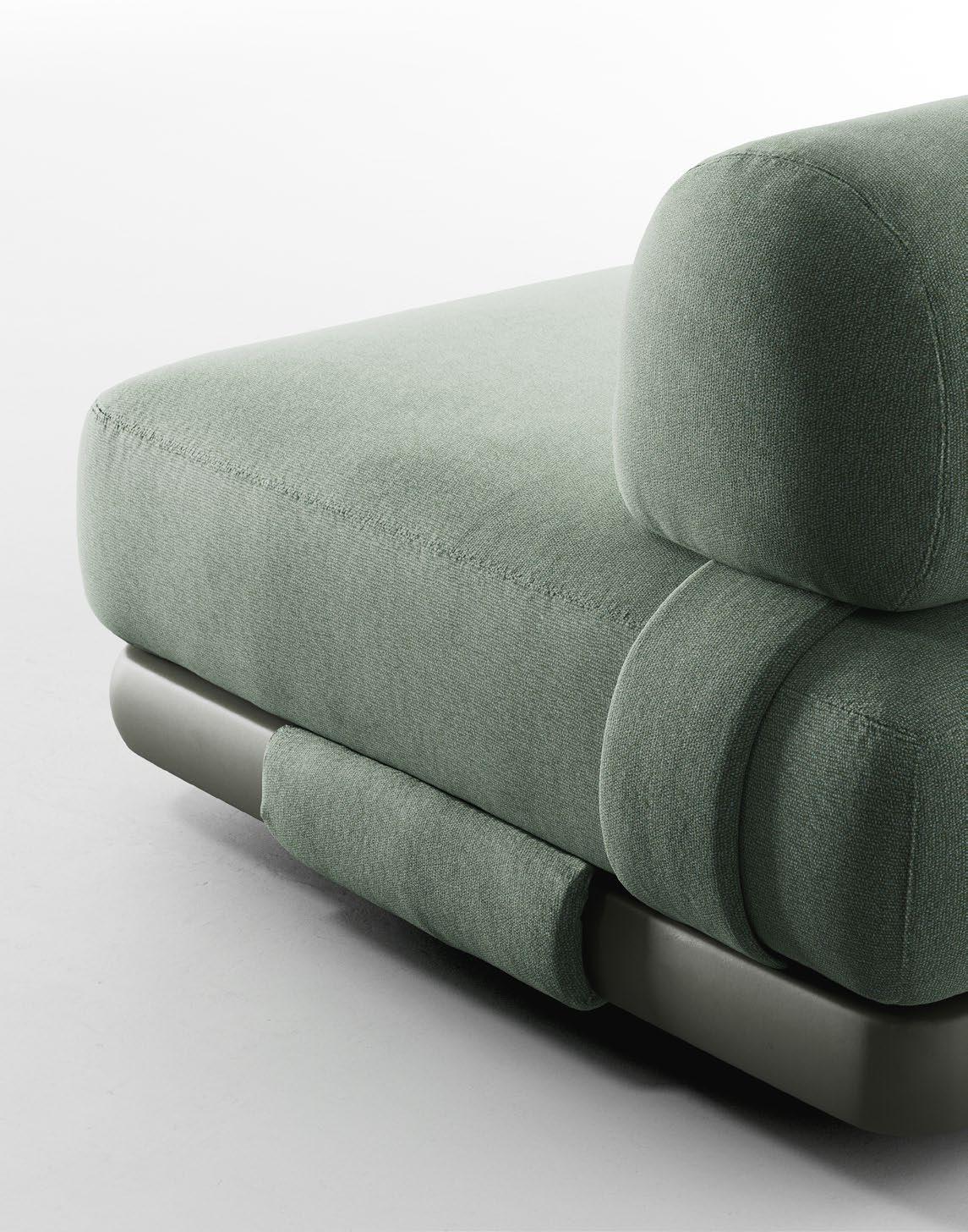 Formally, it is a rational modular sofa with very softened shapes and low height, with a Insula in the backrest that concentrates all the protagonism of the design and provides a decidedly horizontal emphasis. It combines carefully balanced proportions as an architectural element that can be subtly integrated.