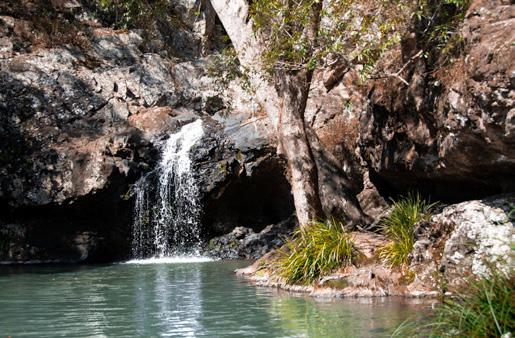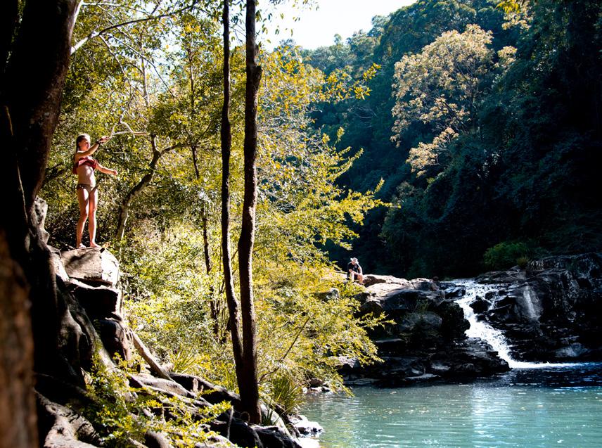 Serene and scenic, Gardners Falls in Maleny offers a safe, familyfriendly swimming area. The car park is on the banks of Obi Obi Creek, and it’s only a short walk downstream to the falls, which have a shallow pool and small