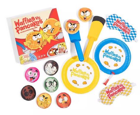You’ve heard of breakfast for dinner... Why not breakfast for game night? Introducing Waffles vs Pancakes, the breakfast food scoop-up game for families! While blindfolded, compete to use your spatulas to scoop up as many Waffles or Pancakes as you can before time’s up. Just don’t scoop any of the other team’s! Plus, look out for special Power-Ups within the stack // $35