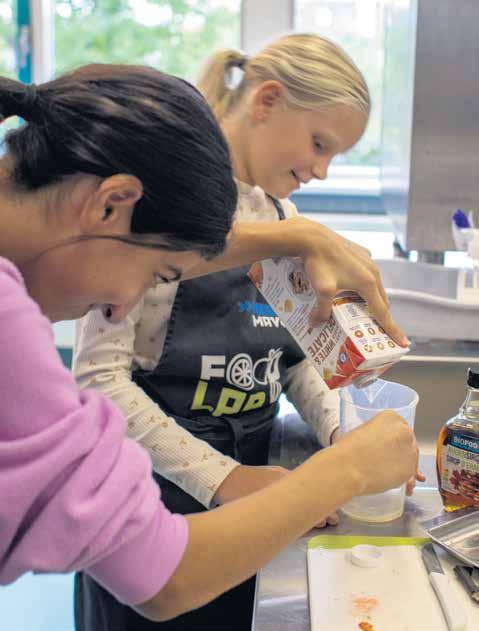 ‘Bij het FoodLab ga je zelf koken’, zegt Aurora. ‘En je kunt van alles uitproberen bijvoorbeeld met smaken. Dat doe ik thuis eigenlijk niet. We werken veel samen tijdens de lessen. We maken verschillende lekkere gerechten, bijvoorbeeld iets zoets of vegetarisch. We proberen wel alles zo gezond mogelijk te maken. We gebruiken bijvoorbeeld geen suiker maar ahornsiroop’, vertelt Lilianna.
