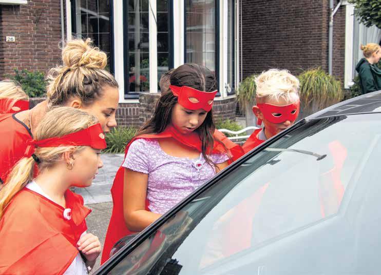 actie, omdat ik zo serieus tegen de mensen praat’, zegt Salomé. ‘Veel mensen reageren heel leuk, ik voelde me zelf een echte verkeersheld’, vult Jens aan. ‘En het valt me op dat veel mensen zich al aan de regels houden, ook al lijkt dat niet zo’, vertelt Loïc.