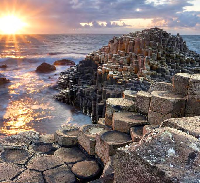 At the intersection of the Causeway Coastal route and the Wild Atlantic Way, Derry-Londonderry is the perfect base to explore this half of Ireland – starting with the worldfamous Giant’s Causeway (Clochán na bhFomhórach), about an hour’s drive away.