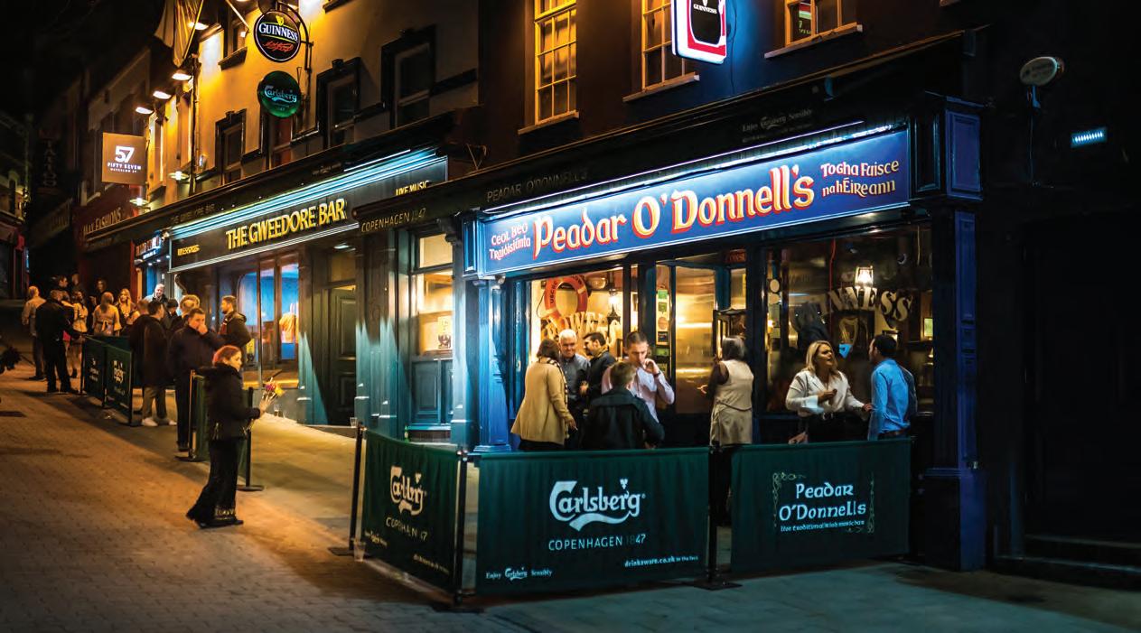 week, try Peadar O’Donnell’s, the raucous, romantic heart of the city’s Irish music district, circled around Waterloo Place and extending up through the pedestrianised Waterloo Street. Partly by dint of the craft of the two-part pour (first to the top of the harp, then the rest once settled), and partly due to the proximity to the Dublin brewery, Guinness tastes best in Ireland, and the pint in O’Donnell’s won’t be beaten anywhere.