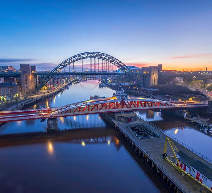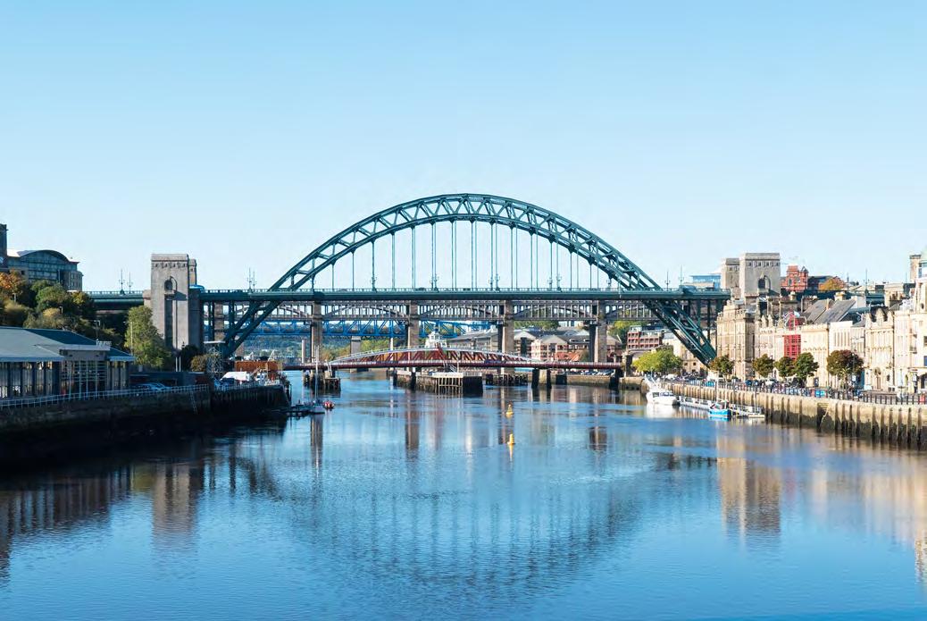 The River Tyne is spanned by seven bridges linking Newcastle and Gateshead. Opposite: Newcastle’s eponymous Castle