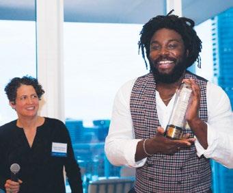 1) 2016 : Jason Reynolds, right, author of As Brave as You , received the prize for young readers’ literature, presented by Kirkus’ Chaya Schechner, in Austin, Texas.