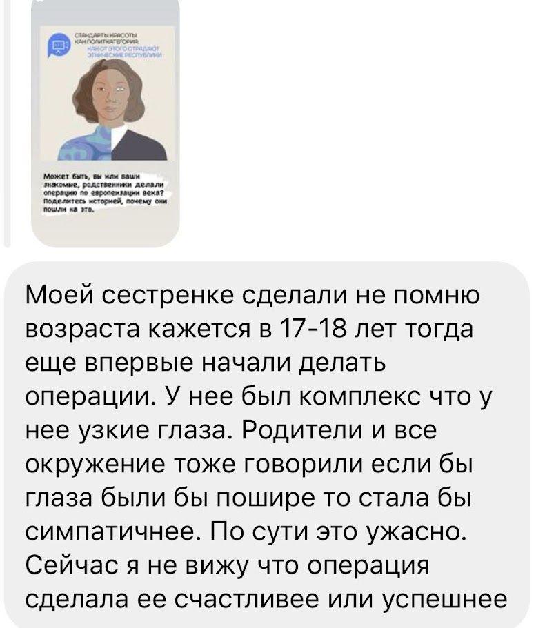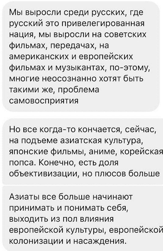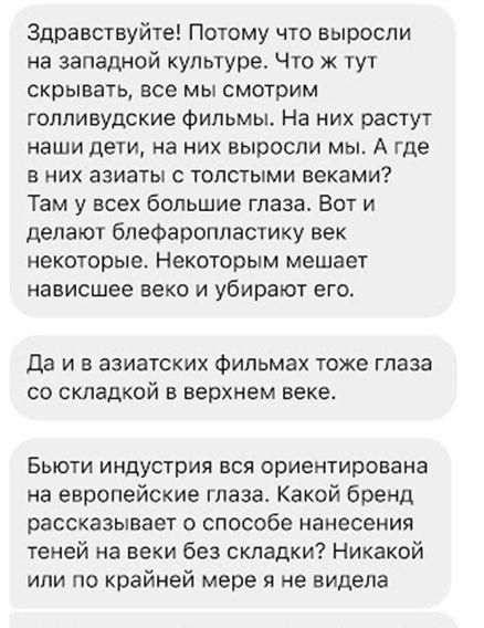 - Каждый человек, независимо от пола, возраста, этничности хочет быть привлекательным. Не отнимайте это право у азиатских людей.