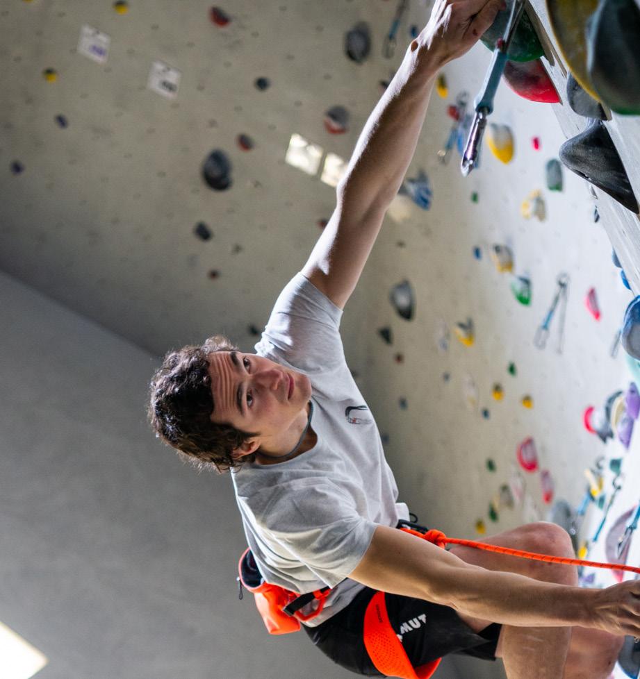 “Es muy difícil decirte cuáles son mis recuerdos más antiguos de la escalada, porque las prime ras experiencias son de hace muchísimo tiempo, de cuando era muy pequeño. No tengo unas pri meras imágenes bien definidas. Lo que sí te puedo decir es que en mi familia todos escalan, y que si con dos años veía a mis padres y a sus amigos escalar, de forma natural, yo también quería ha cerlo. Imagino que para no ser el único que no lo hacía. Así que casi se puede decir que tuve que escalar porque era lo natural, no porque me pre sionaran mis padres. Con seis años, ya veo todo más claro. Recuerdo estar probando una vía bas tante complicada, un 6a, en la escuela de cerca de casa. Ese recuerdo sí que es muy nítido. Disfruté tanto del momento que me animó a seguir esca lando. Luego llegaron las primeras competiciones en las que me motivaba muchísimo no ser capaz de ganarlas. Desde esos momentos quise pasar mucho tiempo en el rocódromo para entrenar y prepararlas mejor. Tengo mucha ambición. Si que daba tercero, estaba contento, pero con ganas de vencer en la siguiente ocasión”.