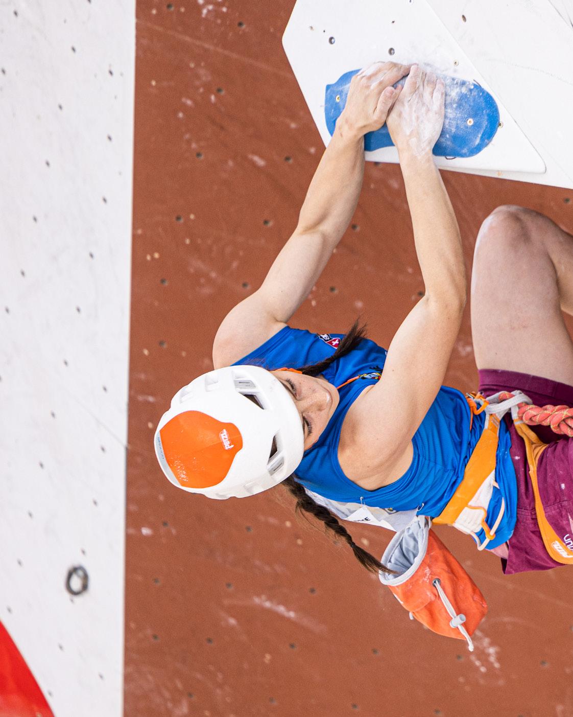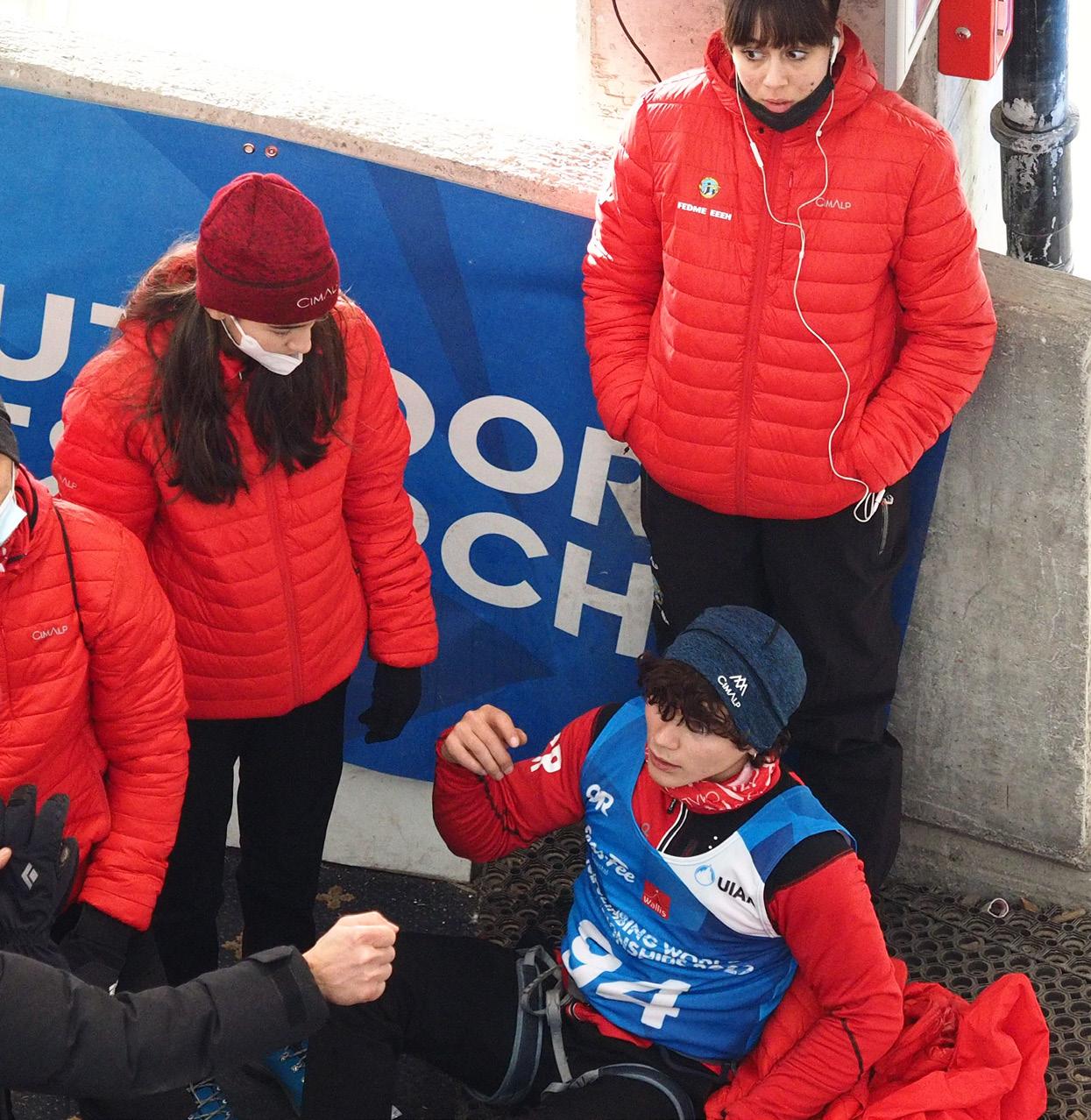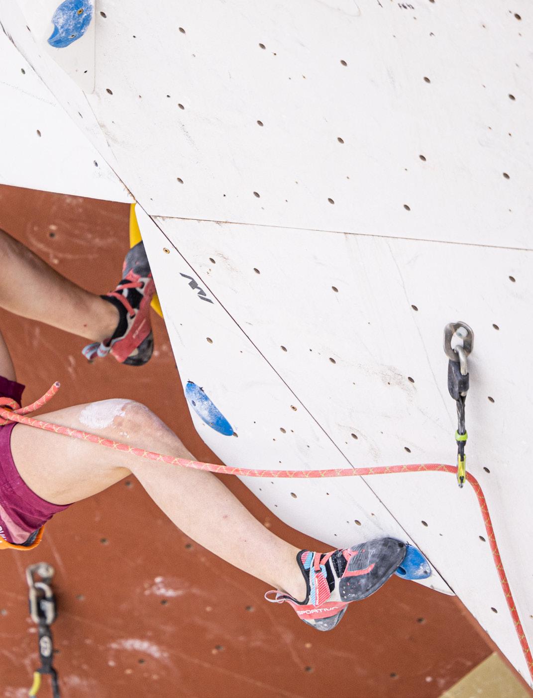 “Para gestionar la presión, tengo como un ritual que consiste en limpiarme cada pie con la pier na contraria. El pie izquierdo con la pierna derecha, y el derecho con la izquierda. Es como un anclaje emocional, como dice mi psicólogo. Cuando lo hago, significa que estoy preparada para dar el pegue y que debo centrarme. Es una estrategia para decirme que es el momento y que sólo debo pensar en escalar”.