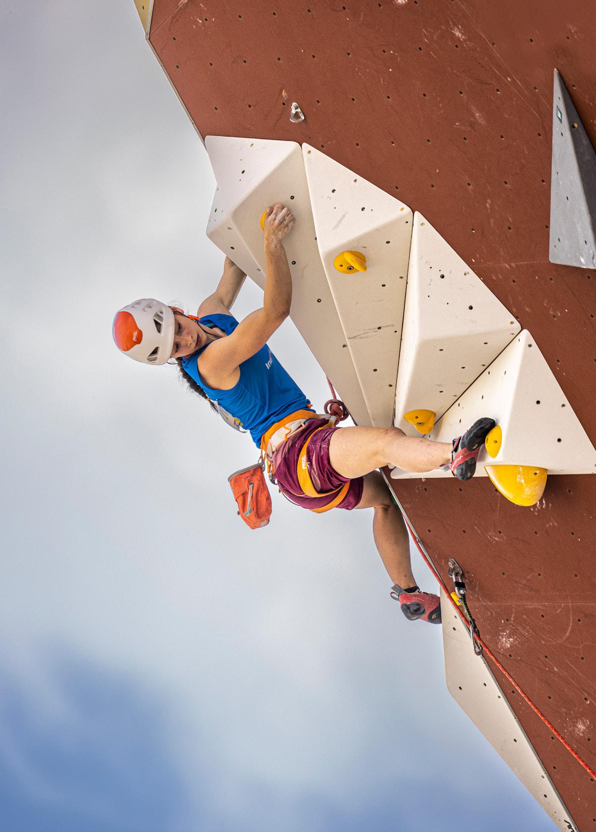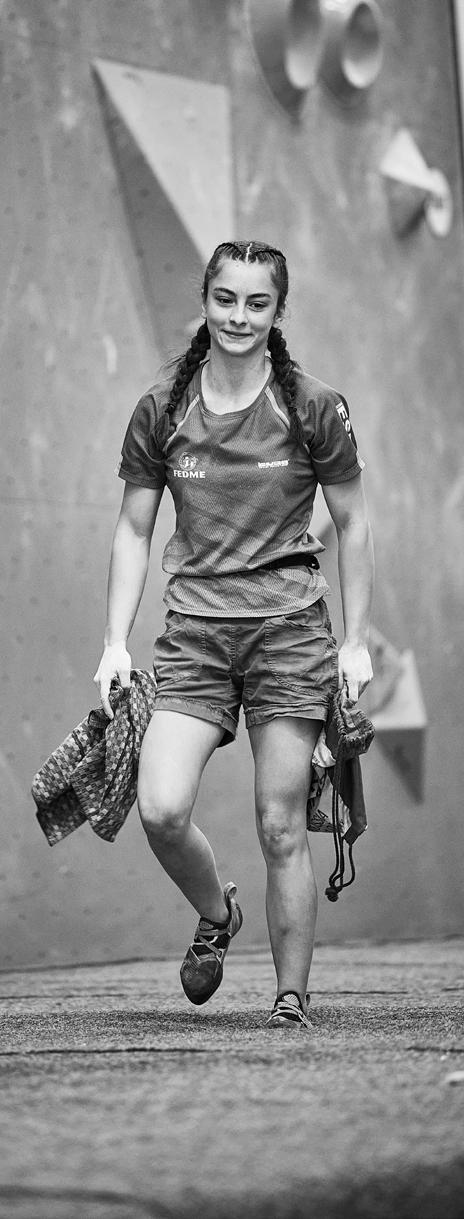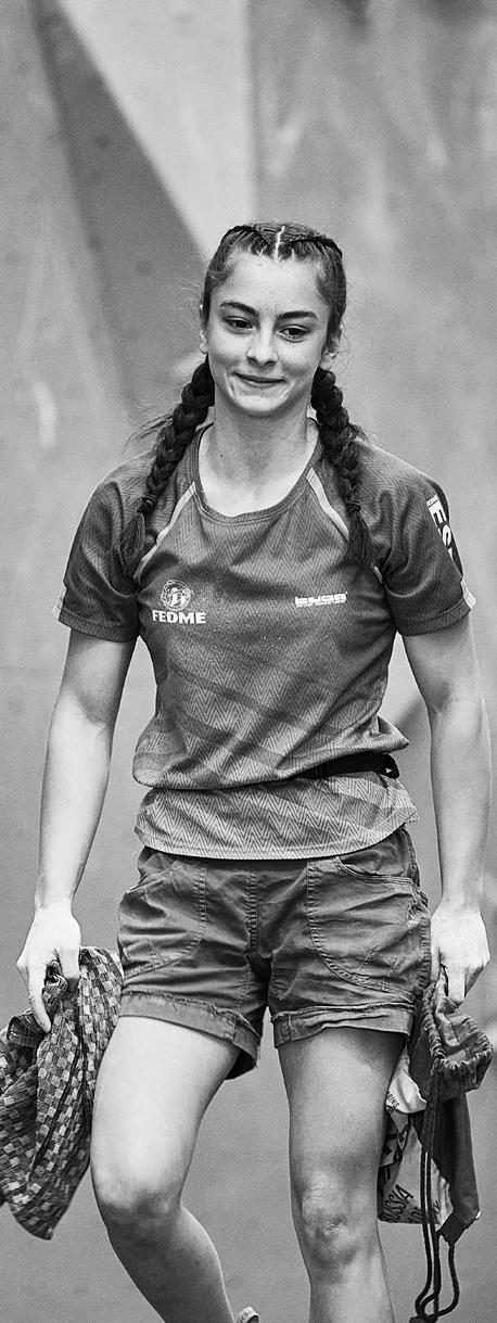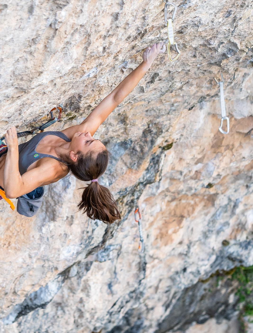 Como máximos exponentes de la escalada de dificultad tenemos hoy en día a Angela Eiter, Julia Chanourdie y Laura Rogora. Ellas tres son las únicas mujeres que han podido encadenar hasta ahora un 9b. Ange la, con 35 años, es la más veterana de las tres. La austriaca empezó a ganar medallas en competiciones internacionales hace 15 años. Mucha experiencia y muchas horas de dificultad, entrenamiento y roca a sus espal das. Julia y Laura son más jóvenes. ¿Subirán estas escaladoras otro escalón o llegará en la siguiente generación, siendo ellas las re ferencias? El tiempo lo dirá.