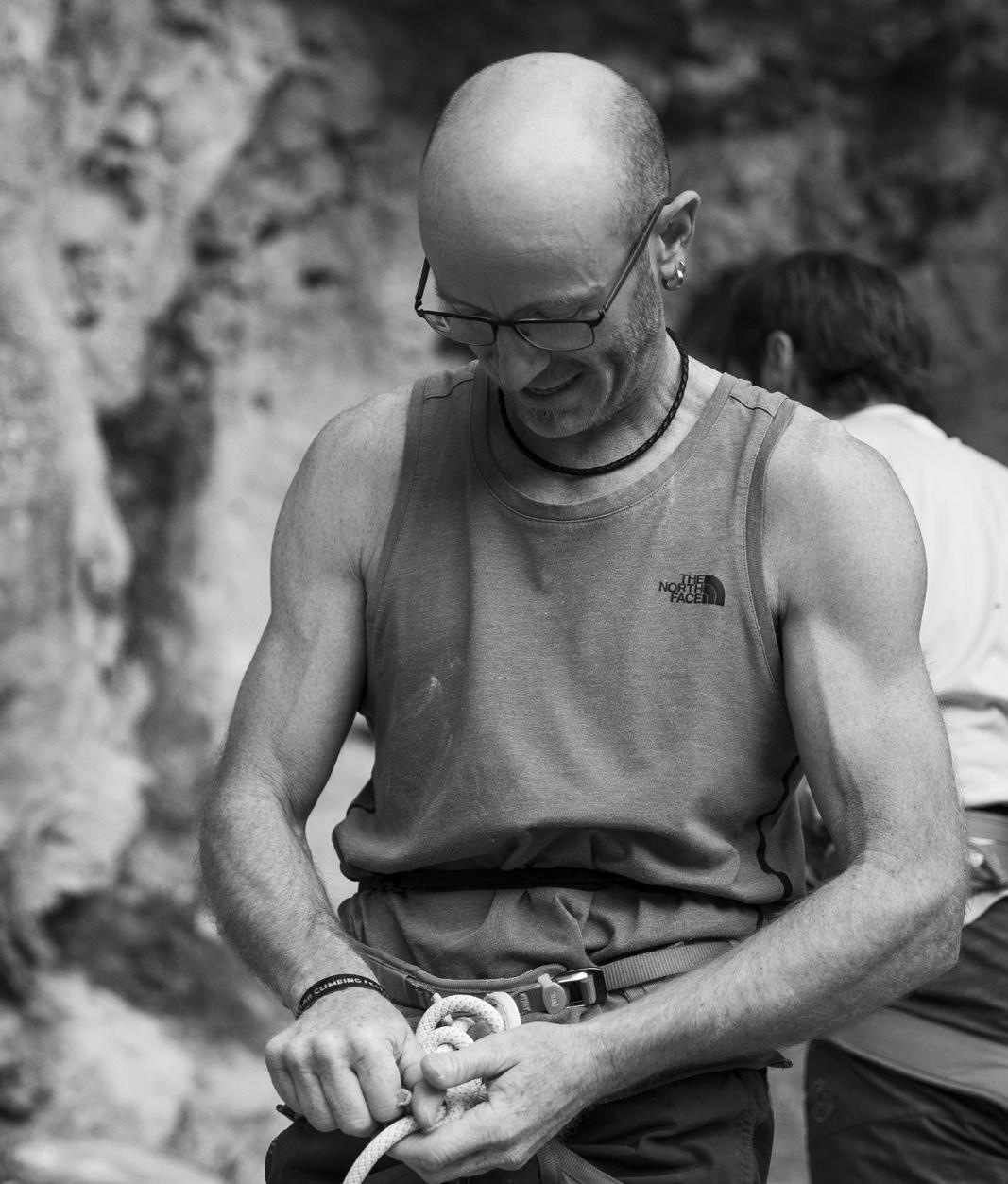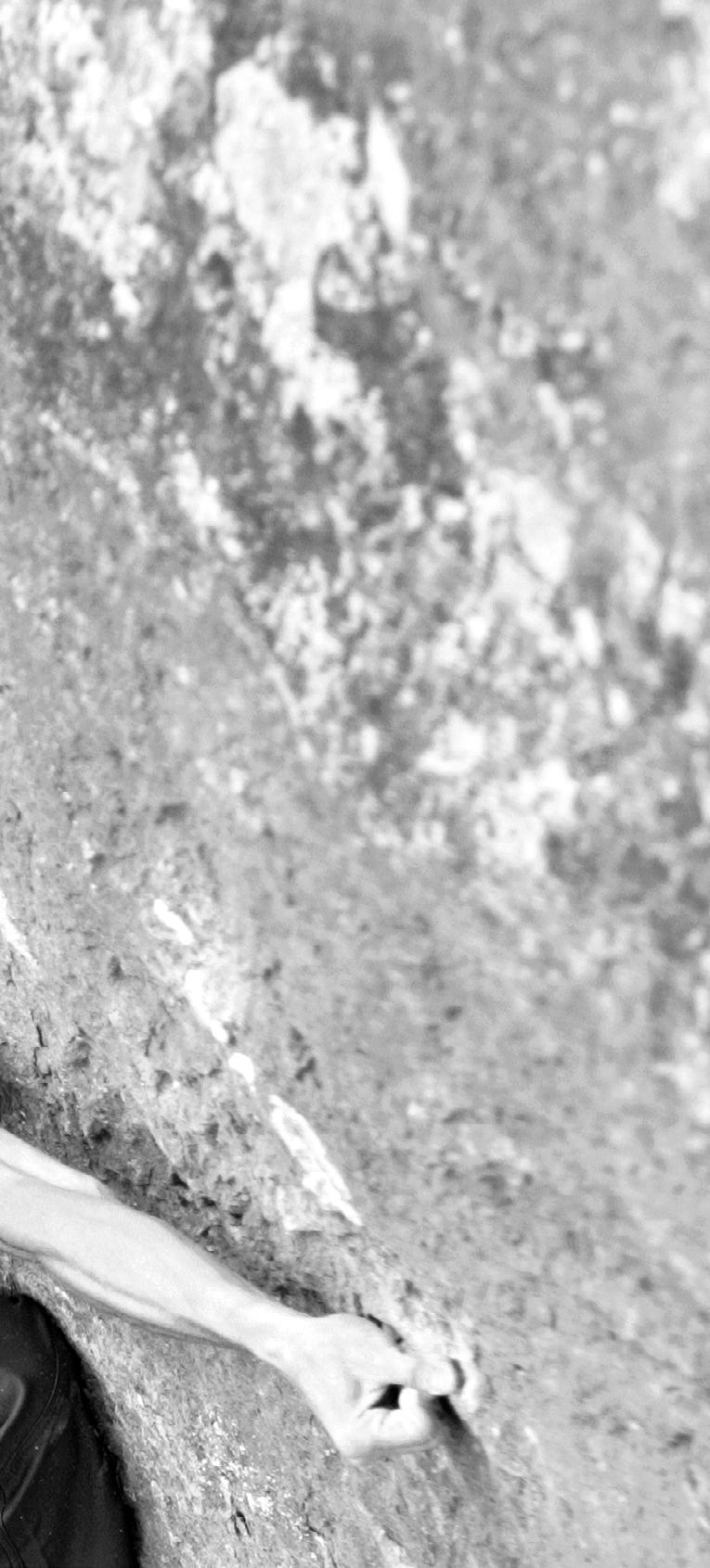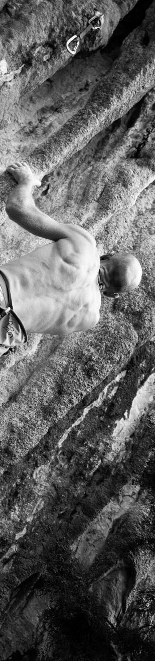 “Hay mucho espacio para mejorar y trabajar me diante el entrenamiento. Escalar es aún una cosa muy compleja. El entrenamiento físico sí ha evolu cionado bien, pero no se ha llegado a juntar con el entrenamiento de la técnica. Saber utilizar cada músculo del cuerpo a la perfección es algo que puede evolucionar y susceptible de mucha me jora. También el aspecto mental. Hay mucho por evolucionar. Es como si tuviésemos un niño de sólo cinco años con el que se pudiera trabajar mucho la técnica. En eso ando últimamente. Siempre me he concentrado mucho en la técnica, en escalar cien por cien perfecto, en utilizar la menor fuerza posible para encadenar una vía. Hace unos años pensaba que escalaba casi a la perfección, y que sólo podía mejorar con entrenamiento físico, pero ahora me he dado cuenta de que no es verdad. Sí que puedo aún evolucionar mucho con el en trenamiento físico, pero más con la técnica. Hay aspectos que nunca había pensado”.