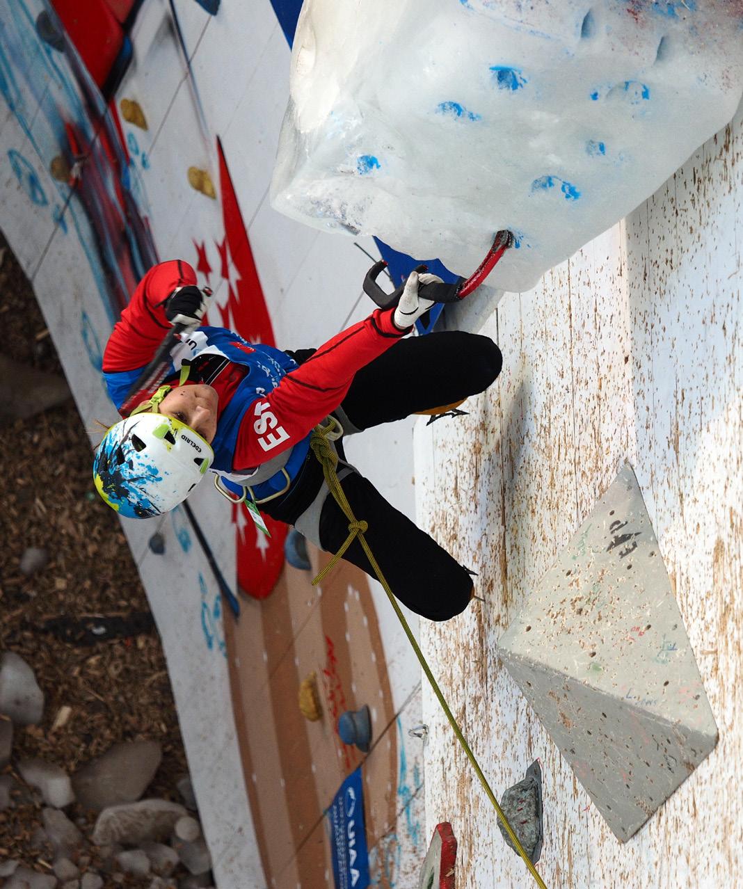 Movimientos que nos dejan sin respiración, que entrañan fuerza, pero también mucha tecni cidad. Unas competiciones que requieren una concisa lectura y un conocimiento profundo del material si no se quiere fallar. La escalada en hielo es una disciplina compleja y única que mezcla a la perfección la escalada de competición y el alpinismo, pero con toda la identidad de un deporte en sí mismo.