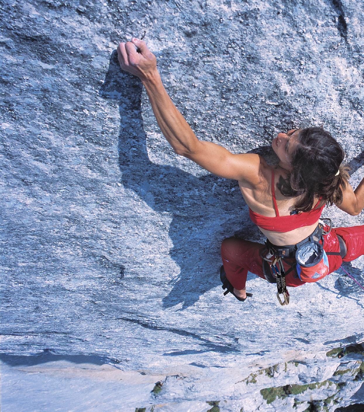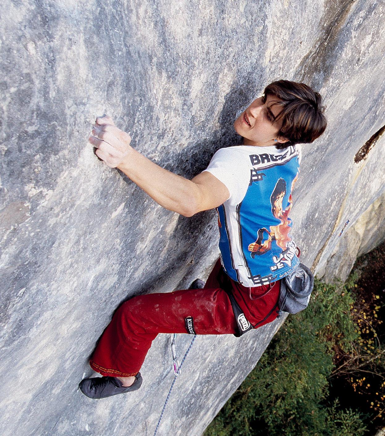 K: Siguiendo con la figura de Josune Bereziartu como pionera en la escalada, me centro ahora en una cues tión que siempre me ha llamado la atención. Cuando encadenas en 1997 Fetuccini, en El Convento (Álava), ya habían pasado cinco años desde que Wolfgang Güllich había logrado el primer noveno de la historia en Action Di recte La brecha hombre/mujer era muy grande. A partir de ahí, consigues el primer 8c en 1998