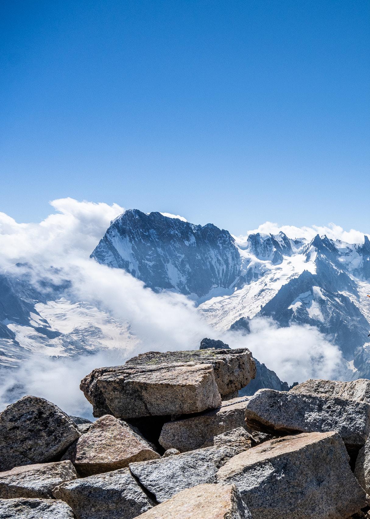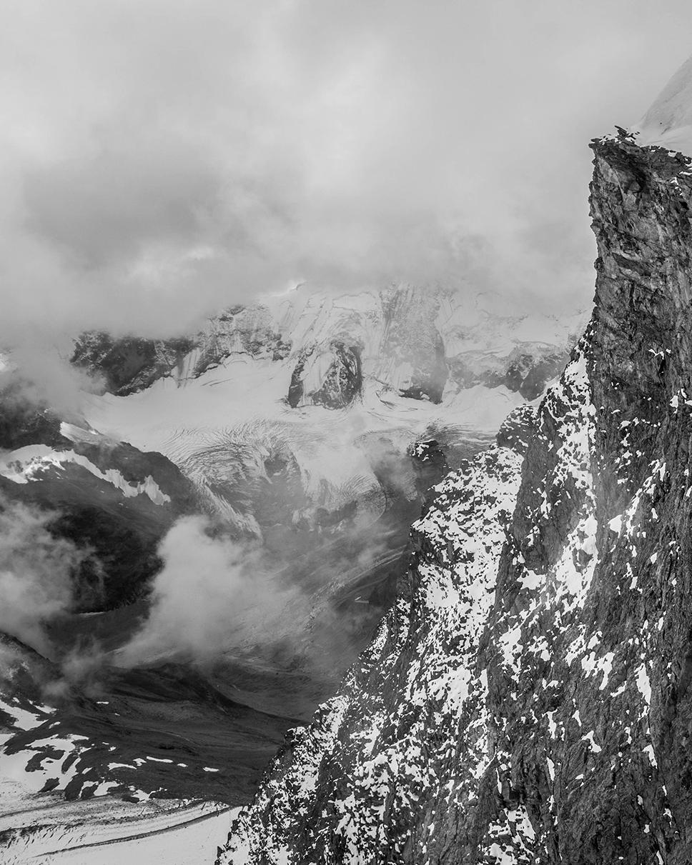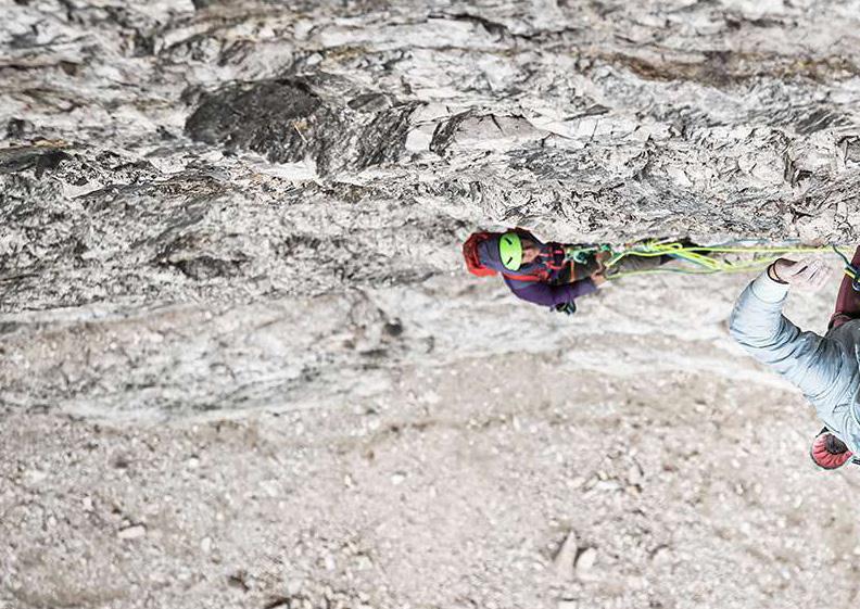 Cuando viajo a algún lugar por prime ra vez, suelo aprenderme los nombres de las cumbres antes de venir. Aquí era muy difícil pues hay demasiadas. Tampoco ayudaba el hecho de que los nombres fueran en alemán. Jun to a la logística de este tipo de viajes, tuve que seleccionar qué vías escala ría, aprender a escalar por rocas poco estables con pitones oxidados por el tiempo y encontrar las vías de retor no. Todo ello, sin perder el humor para generar una buena atmósfera dentro del equipo y cuadrando horarios con los encargados del rodaje.