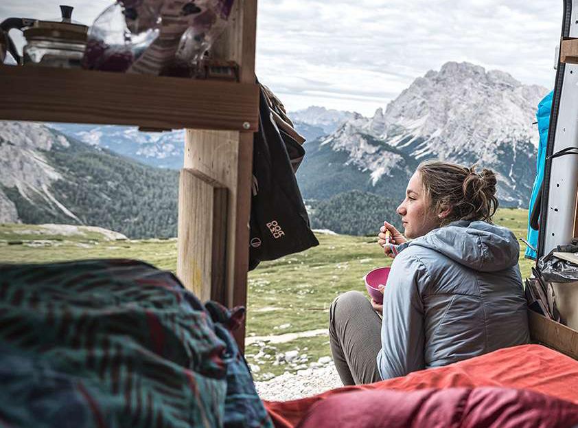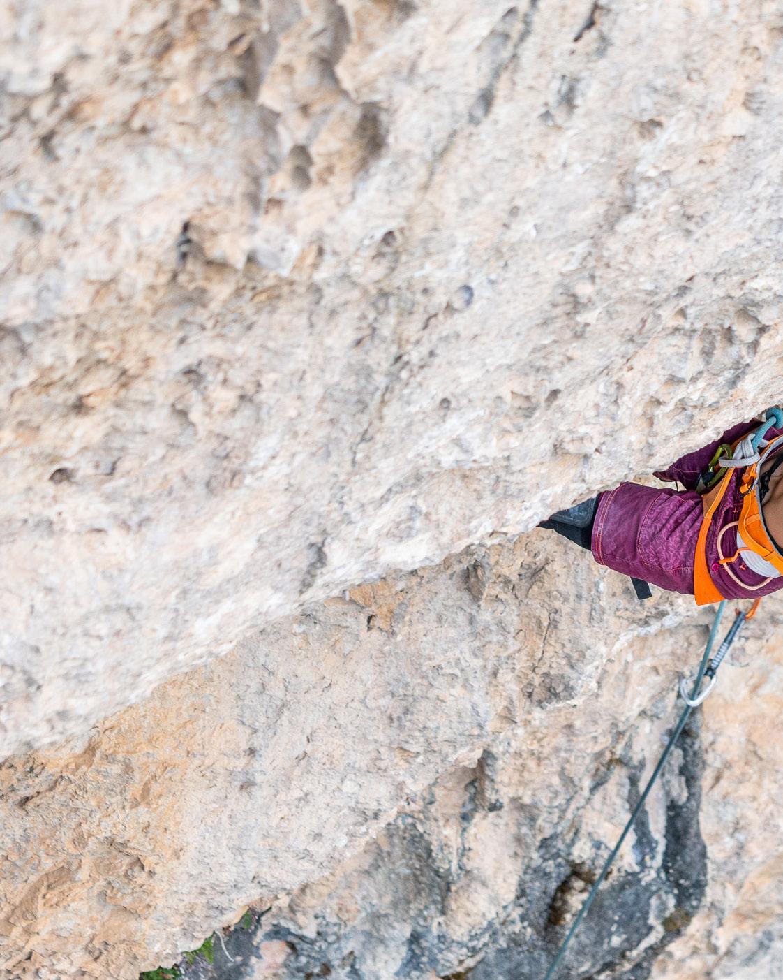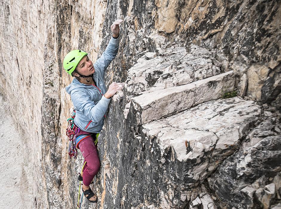 Eline escaló en Dolomitas varias vías de gran dificultad durante el pasado verano. Mientras intentaba superar la vía Attraverso il Pesce, en la cara sur de la Marmolada, sufrió una grave caída a la que afortunadamente sobrevivió. Ahora trabaja duramente para recuperarse. Espera volver a la roca con fuerza, aunque no se obsesiona con ello.