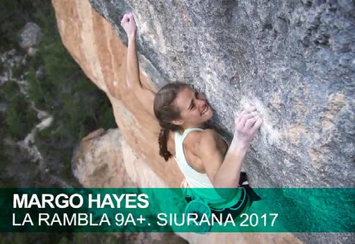 Margo Hayes, primera mujer en escalar 9a+ en Siurana, “La Rambla”. Estadounidense, de niña gimnasta, empezó a escalar con