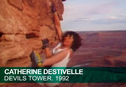 Al otro lado del charco, en aquellos años, destacaba la francesa Catherine Destivelle. Nacida en 1960 en Argelia, se trasladó con su familia a Francia, donde empezó a escalar con 14 años en bloque. Ensegui da progresa en el mundo vertical. Durante unos años dejó de escalar para dedicarse a la fisioterapia y, aunque ya de adolescente había encadenado vías importantes, no fue hasta los 25 años cuando se planteó de