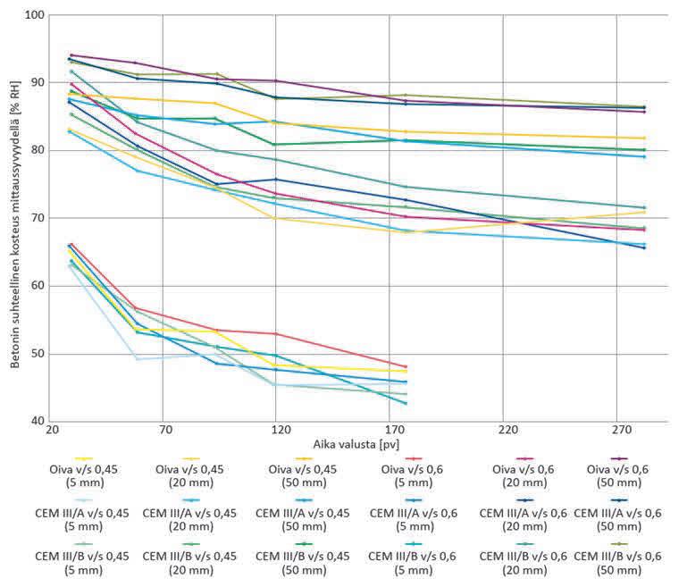 KOLMOSSEMENTTI LYHYESTI: korkean 52,5-lujuusluokan CEM III -masuunikuonasementti sisältää masuunikuonaa 40–46 % 2 vuorokauden lujuus noin 21 MPa, 28 vuorokauden keskimäärin 59 MPa soveltuu käytettäväksi AKR I- ja II-luokan kiviaineksen kanssa hiilidioksidipäästö jopa 40 % pienempi kuin portlandsementtien