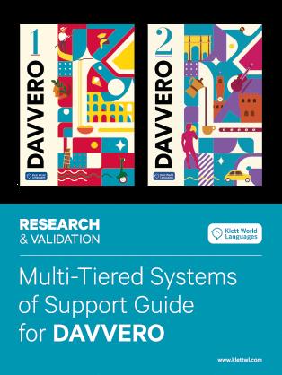 At Klett World Languages, we are proud to offer World Language educators a selection of proficiency-based and communicatively driven textbook options for their students. You will find case studies showcasing DAVVERO’s effectiveness in classroom settings by visiting klettwl.com/case-studies. These success stories highlight how our innovative materials help educators overcome common challenges and significantly enhance learning outcomes.