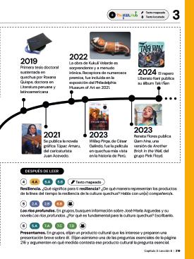 • A robust digital companion with supplementary resources such as video tutorials for grammar and pronunciation, audio recordings by native speakers, assessment activities, expanded cultural content, and more.
