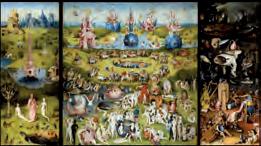 Es la pintura más famosa de El Bosco. Es un tríptico con imágenes simbólicas del paraíso, el mundo de la locura y el infierno.