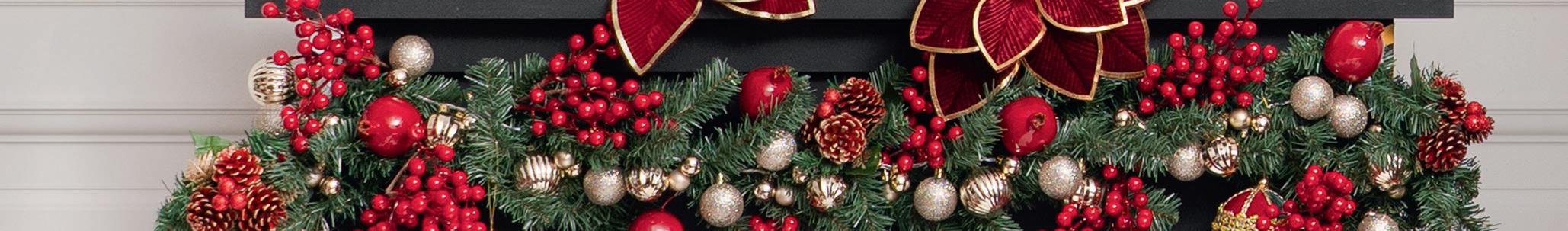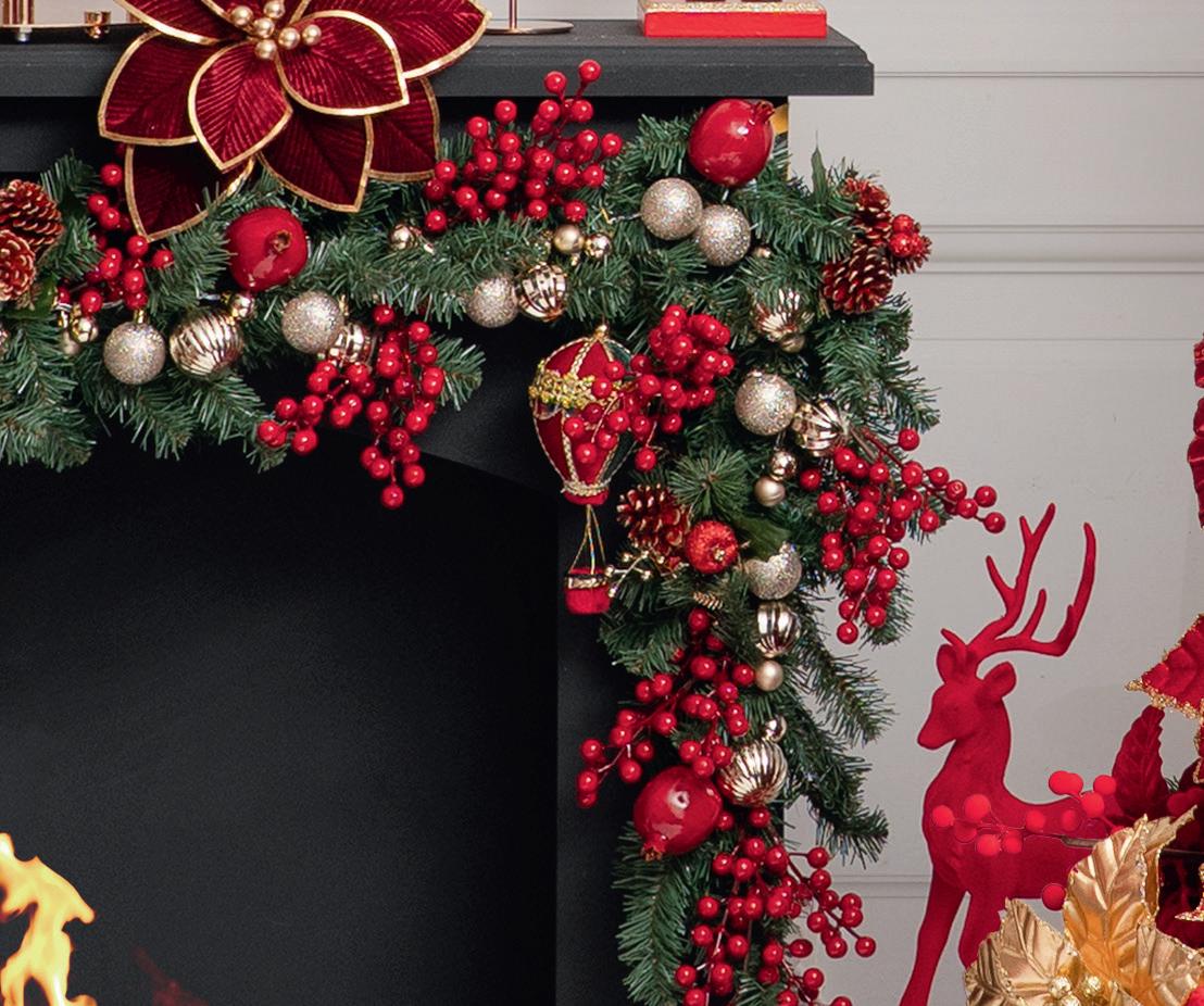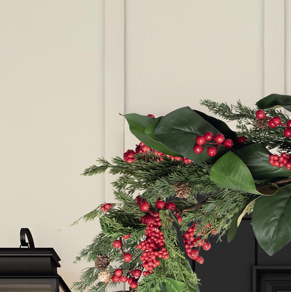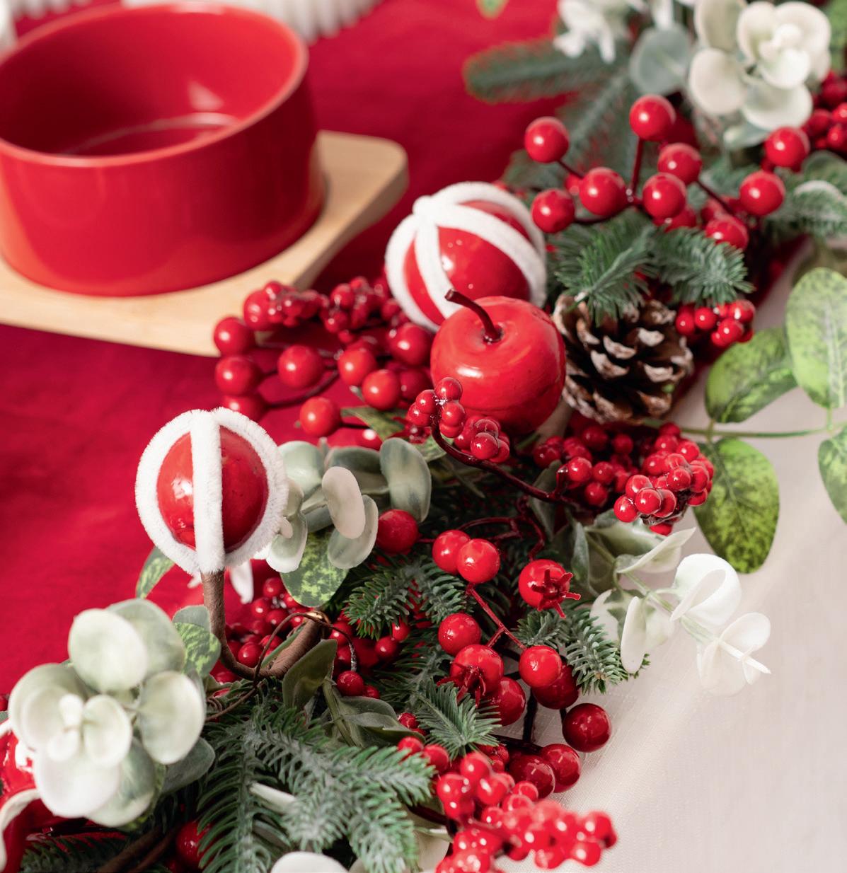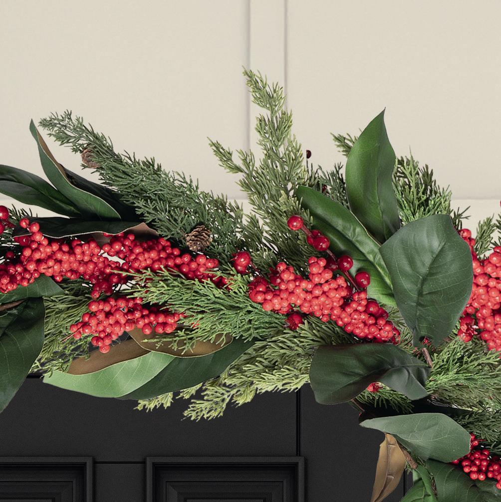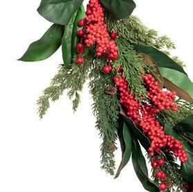 Mixed Pine Leaf Red Berry Garland Green (153cmL)