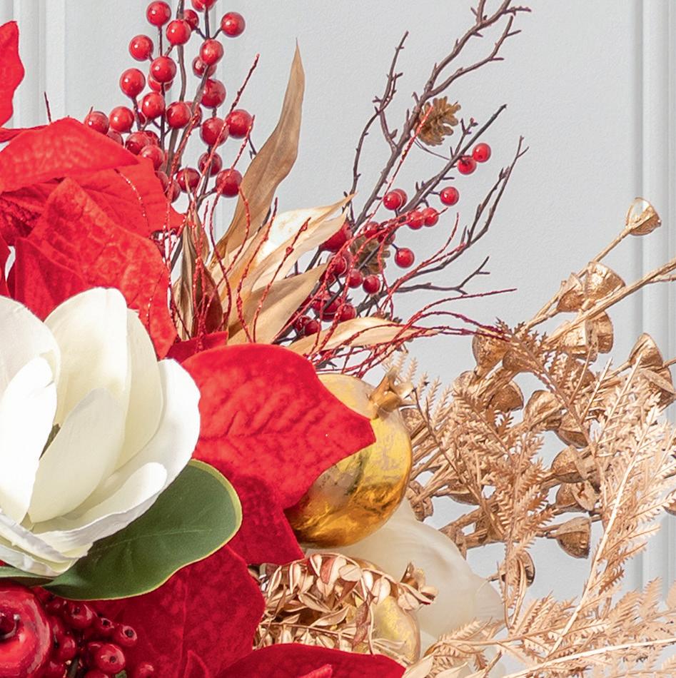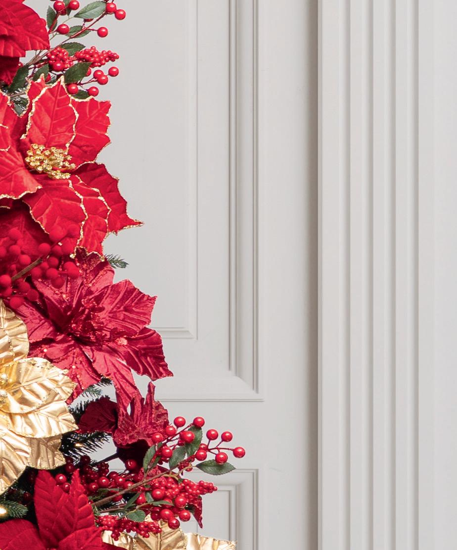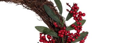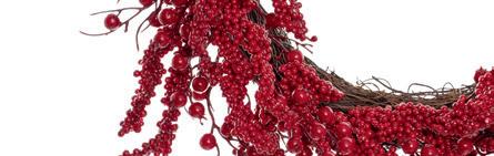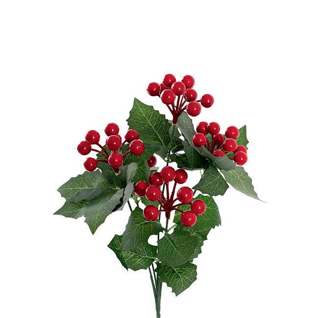 Lush Red Berry Wreath w Leaves Red (40cmD)