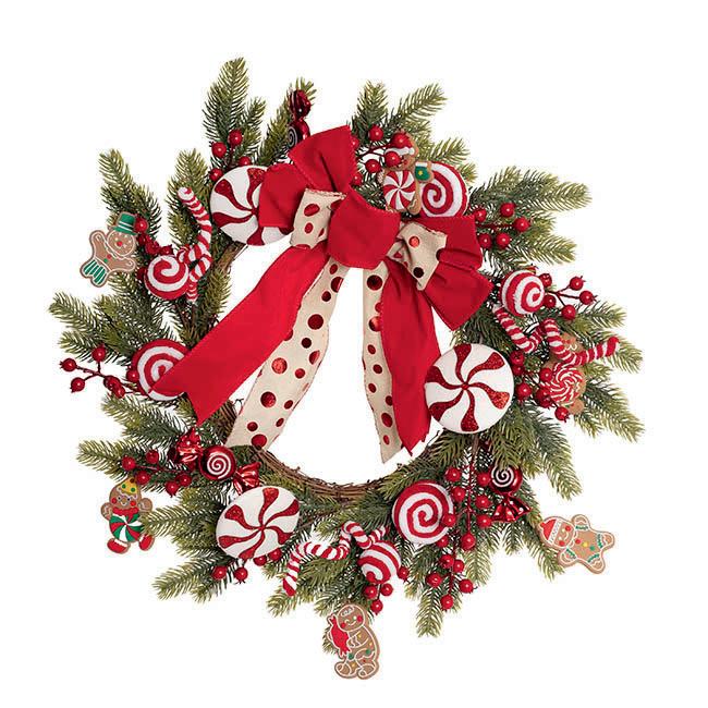 Sweet Candy Gingerbread Man Wreath Red (55cmD)