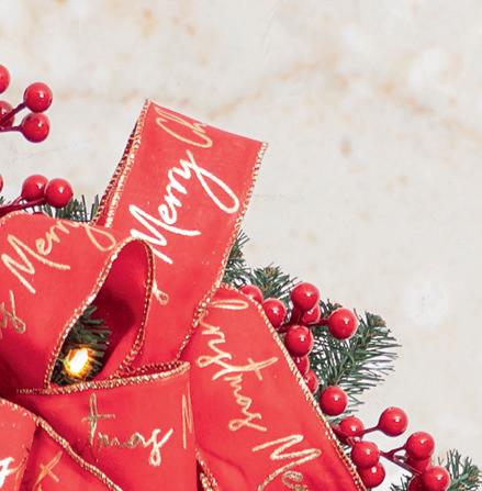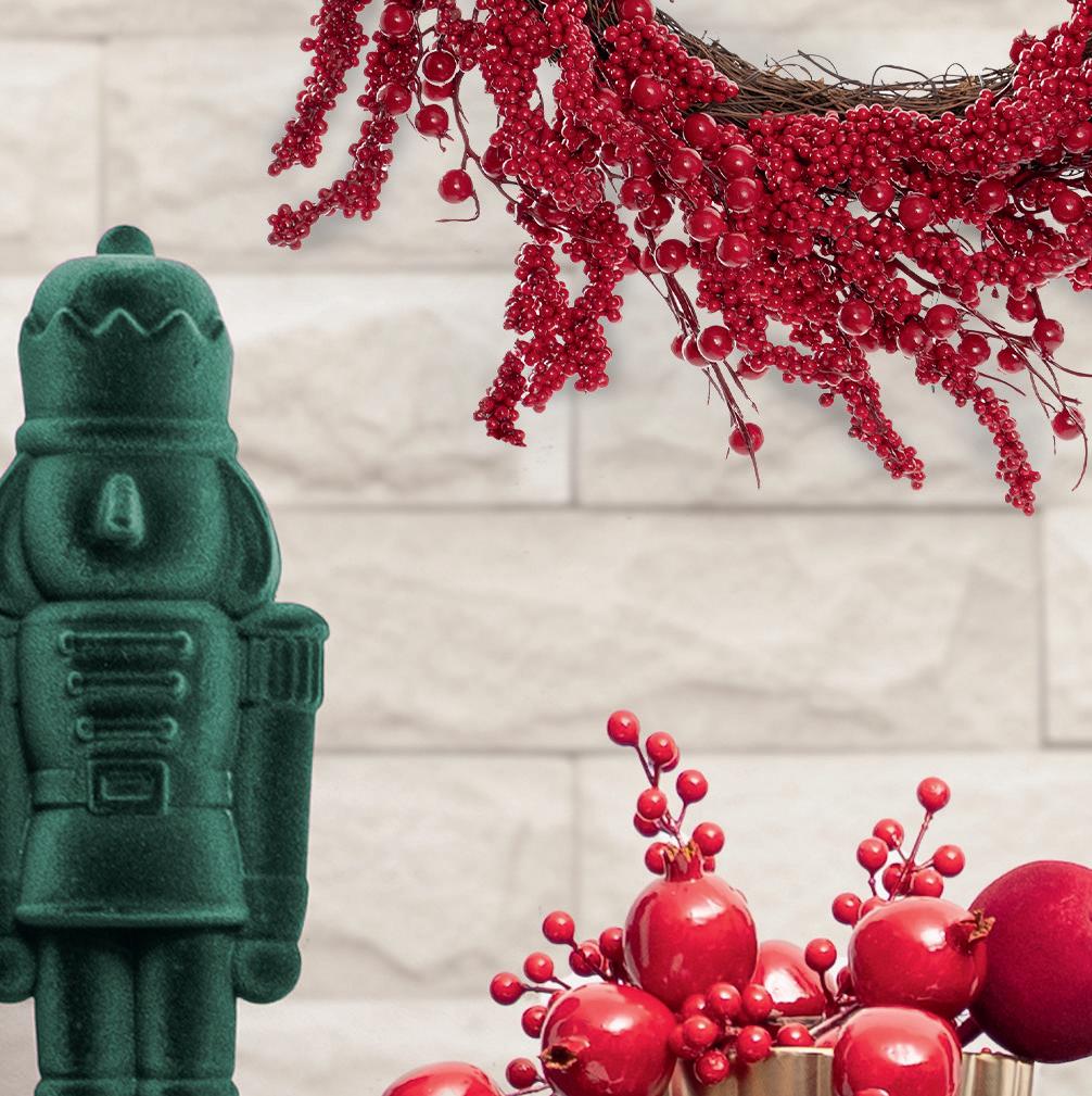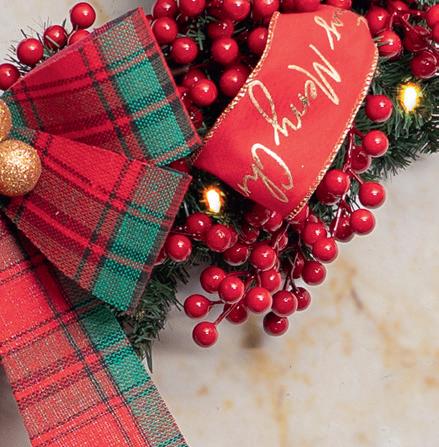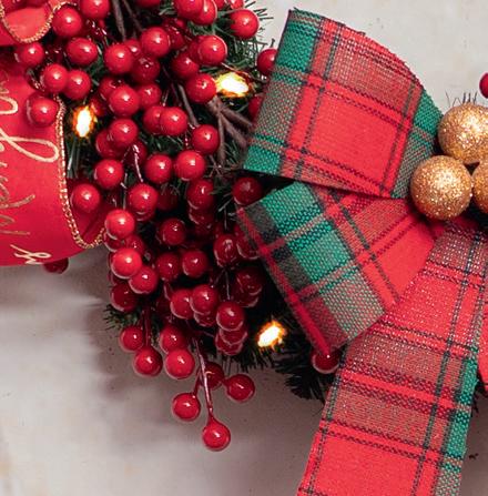 Pre-Made Bow Fabric Top Christmas Berries Green (24x30cm)
