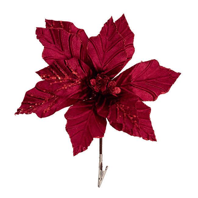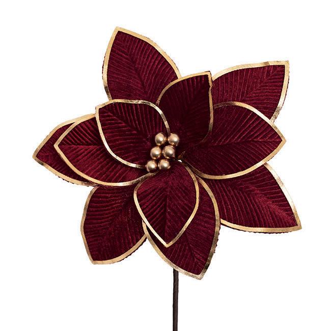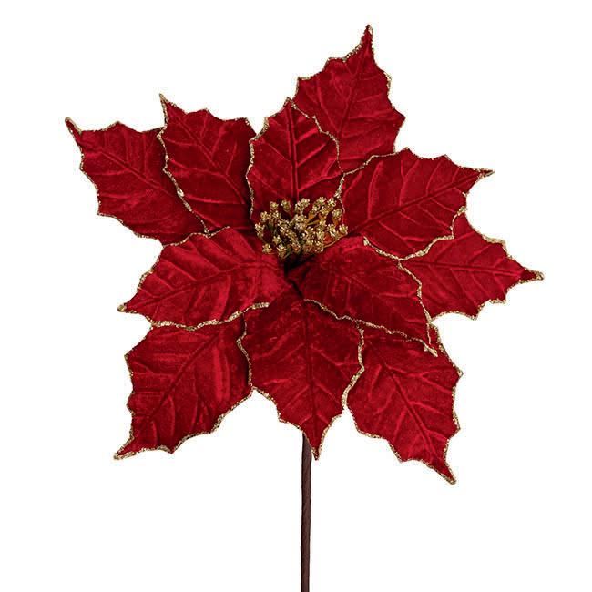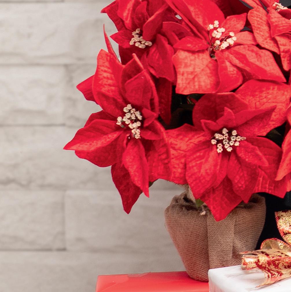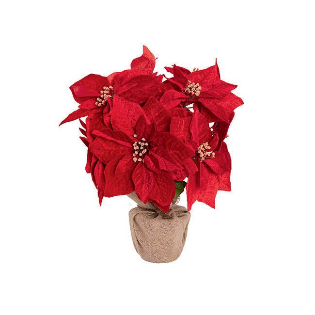 Poinsettia Potted Burlap Wrapped 11 Flowers Red (43cmH)